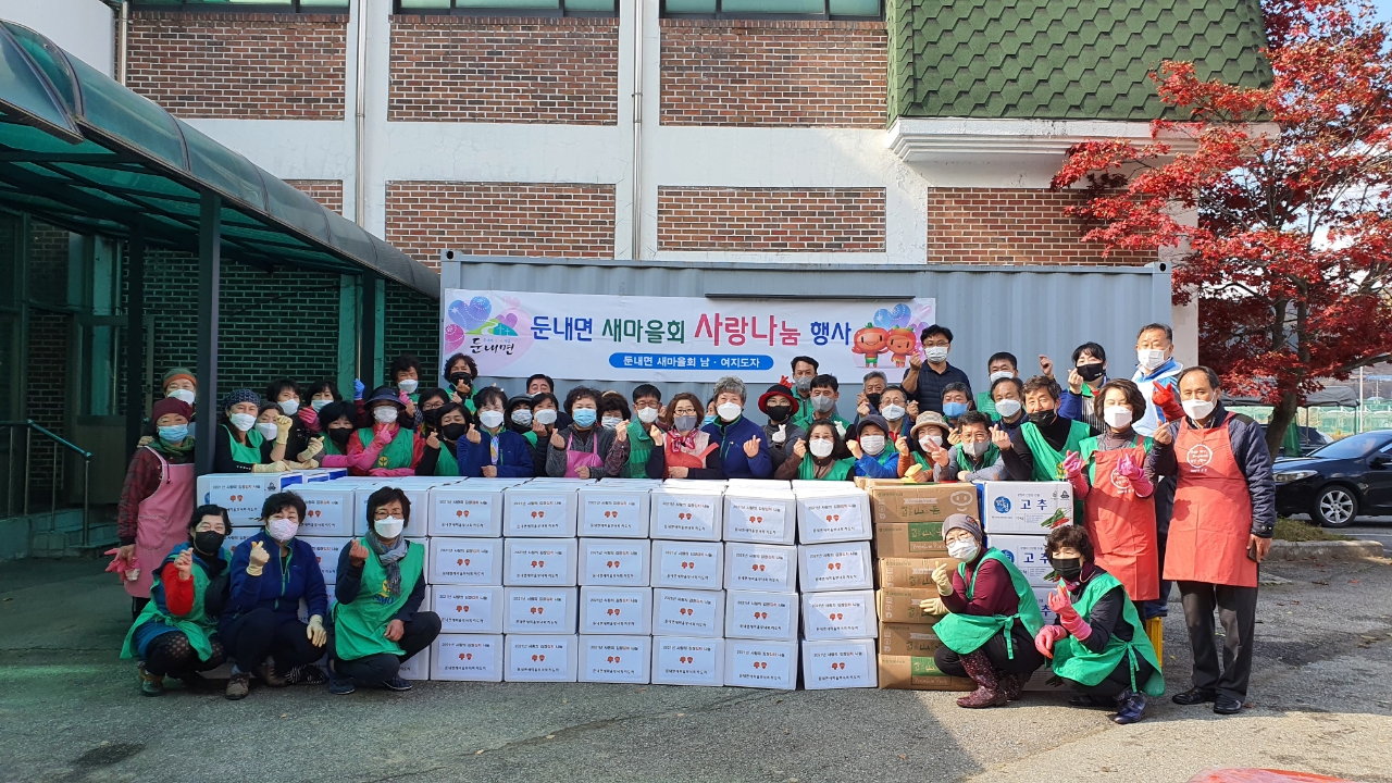 [강원사회복지신문 유경수 기자]=횡성군 둔내면새마을지회(회장 서정희)에서는 지난 11월 2일과 3일, 둔내면 복지회관에서 김장김치 나눔 행사를 펼쳤다. 2일간 정성껏 담근 김장김치는 둔내면 저소득 독거노인 등 어려운 이웃들에 지원되며 김장김치 2,500kg을 총 150가구에 전달되었다.