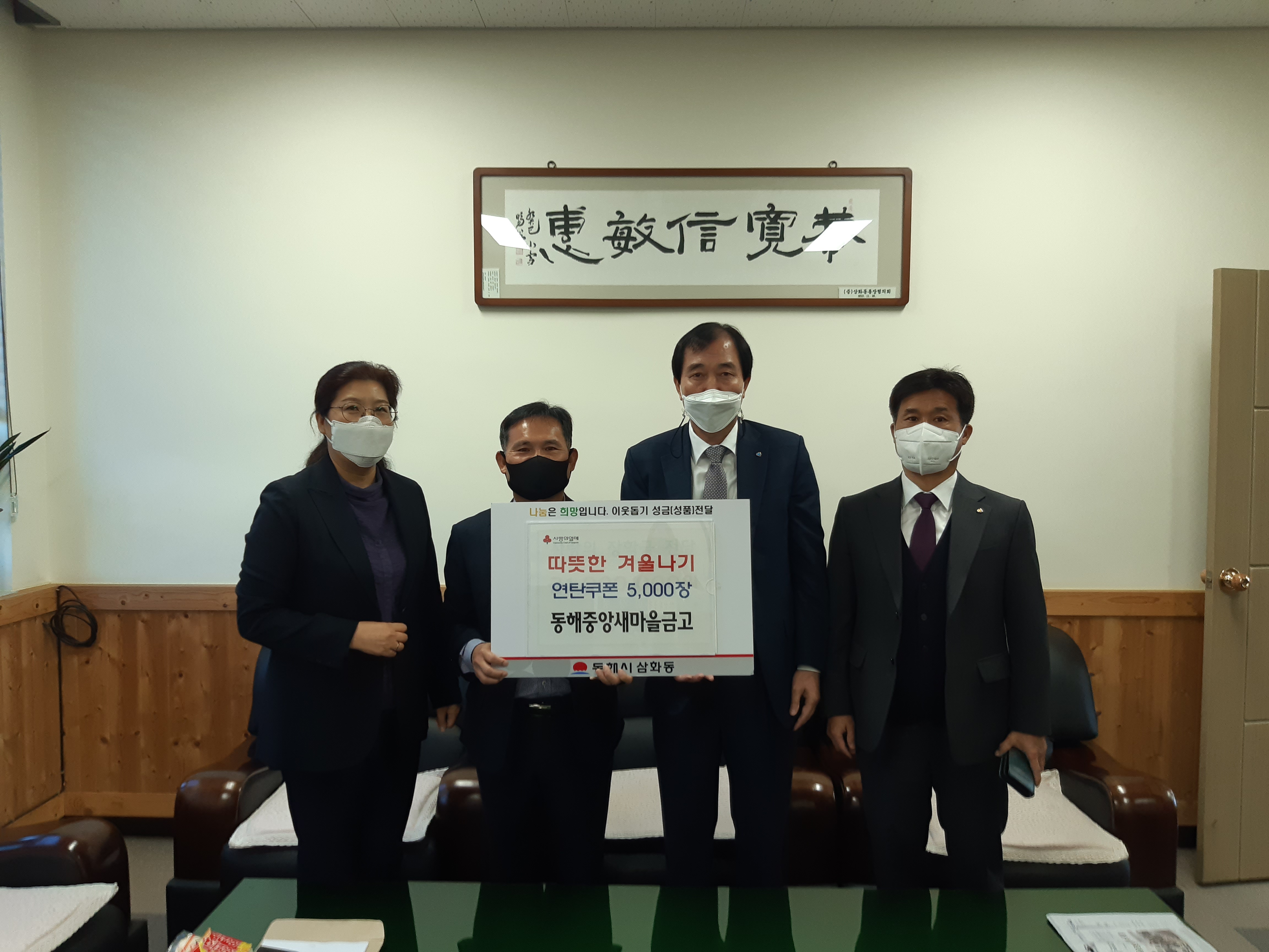 [강원사회복지신문 김종한 기자]=동해시 삼화동 소재 동해중앙새마을금고(이사장 정영교)는 지난 11월 2일 본격적인 겨울을 앞두고 삼화동 관내 에너지 취약계층에 전달해 달라며 400만원 상당의 연탄쿠폰 5,000장을 삼화동 행정복지센터에 전달했다. 이번 연탄 쿠폰은 이웃들이 따뜻하고 훈훈한 겨울을 보낼 수 있도록 삼화...