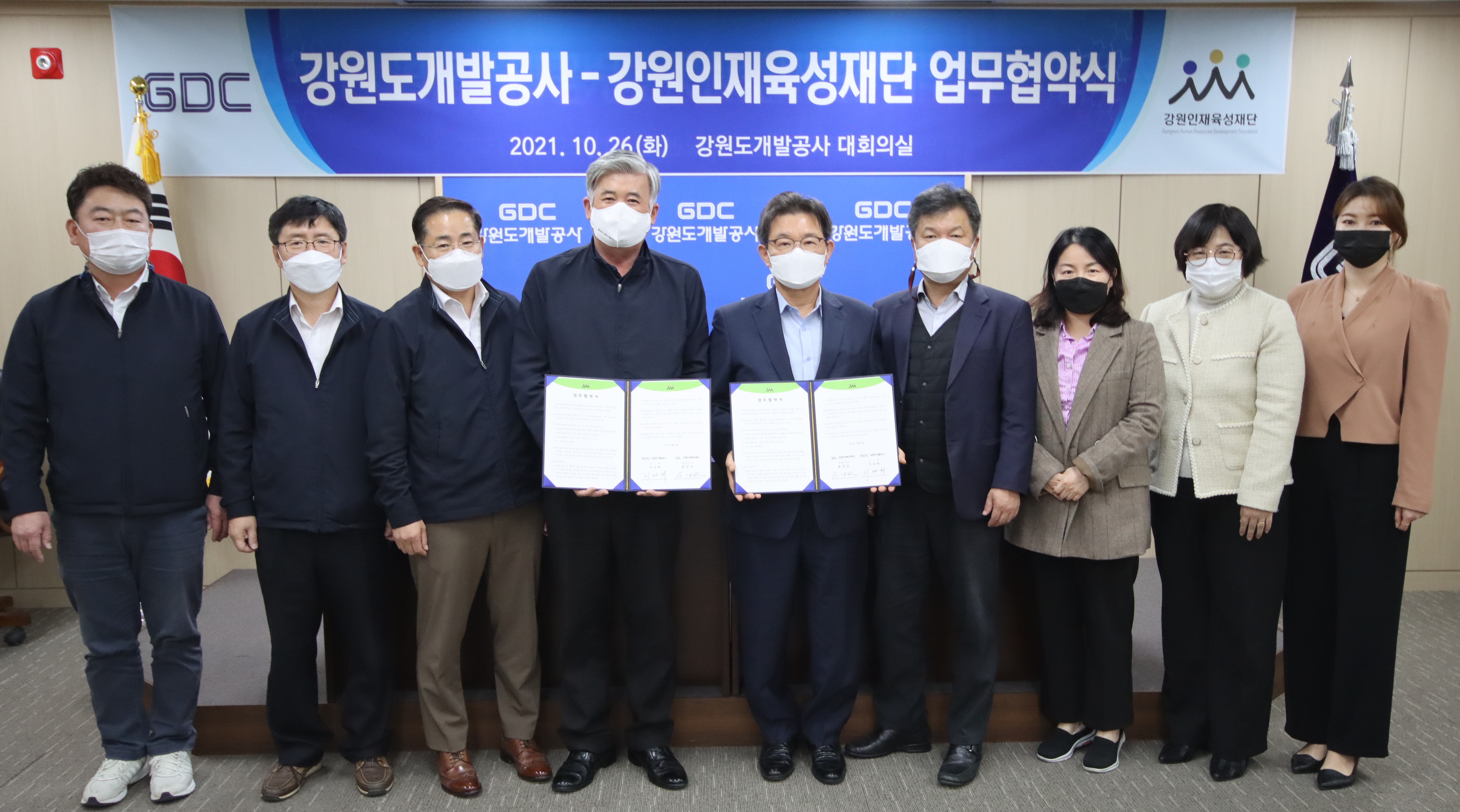 [강원사회복지신문 홍기한 기자]=강원인재육성재단(이사장 최문순)은 지난 10월 26일 강원도개발공사 대회의실에서, 강원개발공사와 '도내 인적자원 육성과 지역 상생'을 위한 업무협약을 체결했다고 밝혔다. 이번 협약으로 강원인재육성재단과 강원도개발공사는 지역인재 육성을 위한 진로체험, 인턴쉽 등 공동사업을 발굴·...