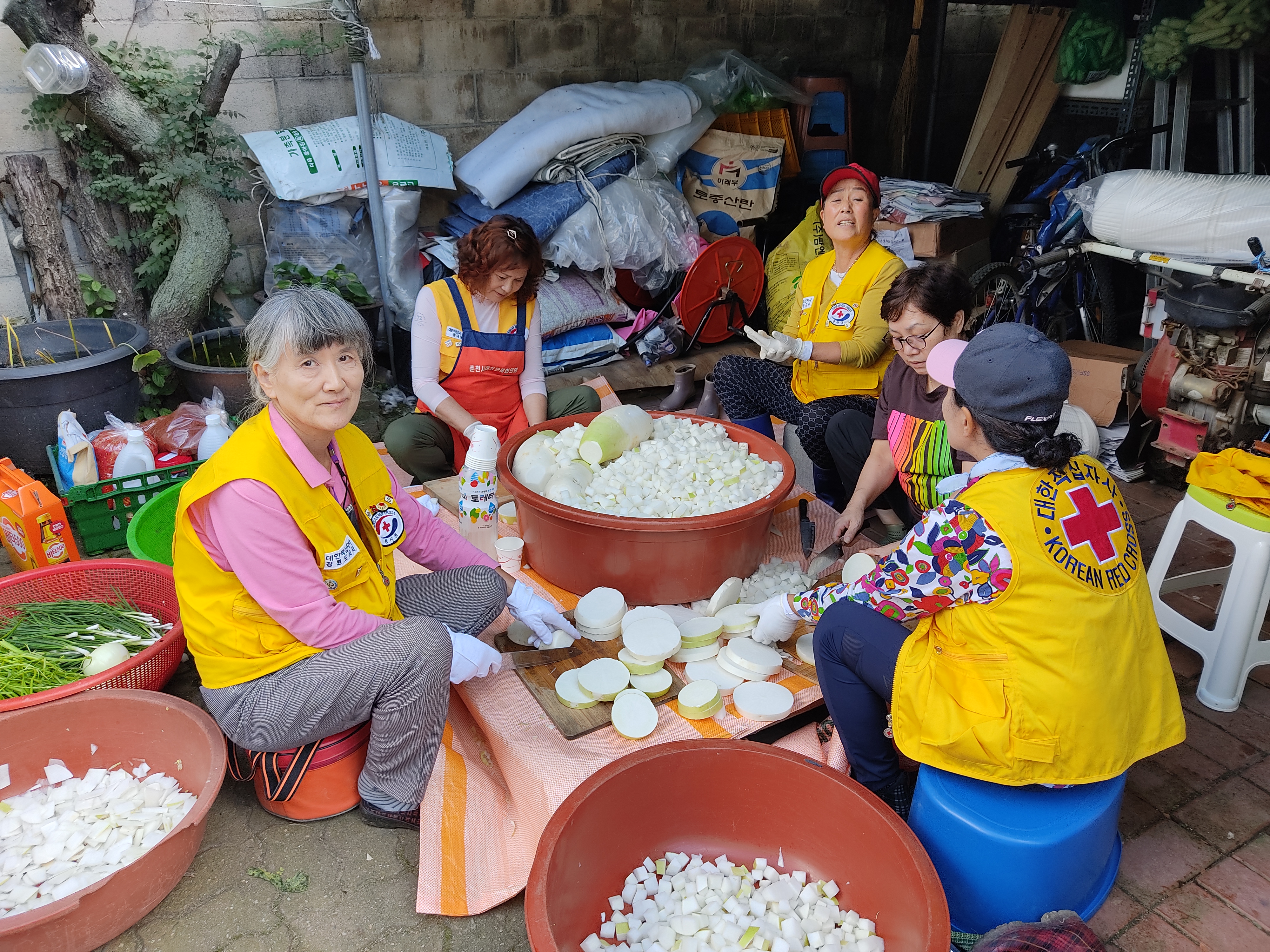 [강원사회복지신문 유경수 기자]=대한적십자춘천지구회 동내봉사회(회장:서정숙)는 지난 10월 14일 어려운 이웃을 위한 김장 나누기 행사를 했다.
