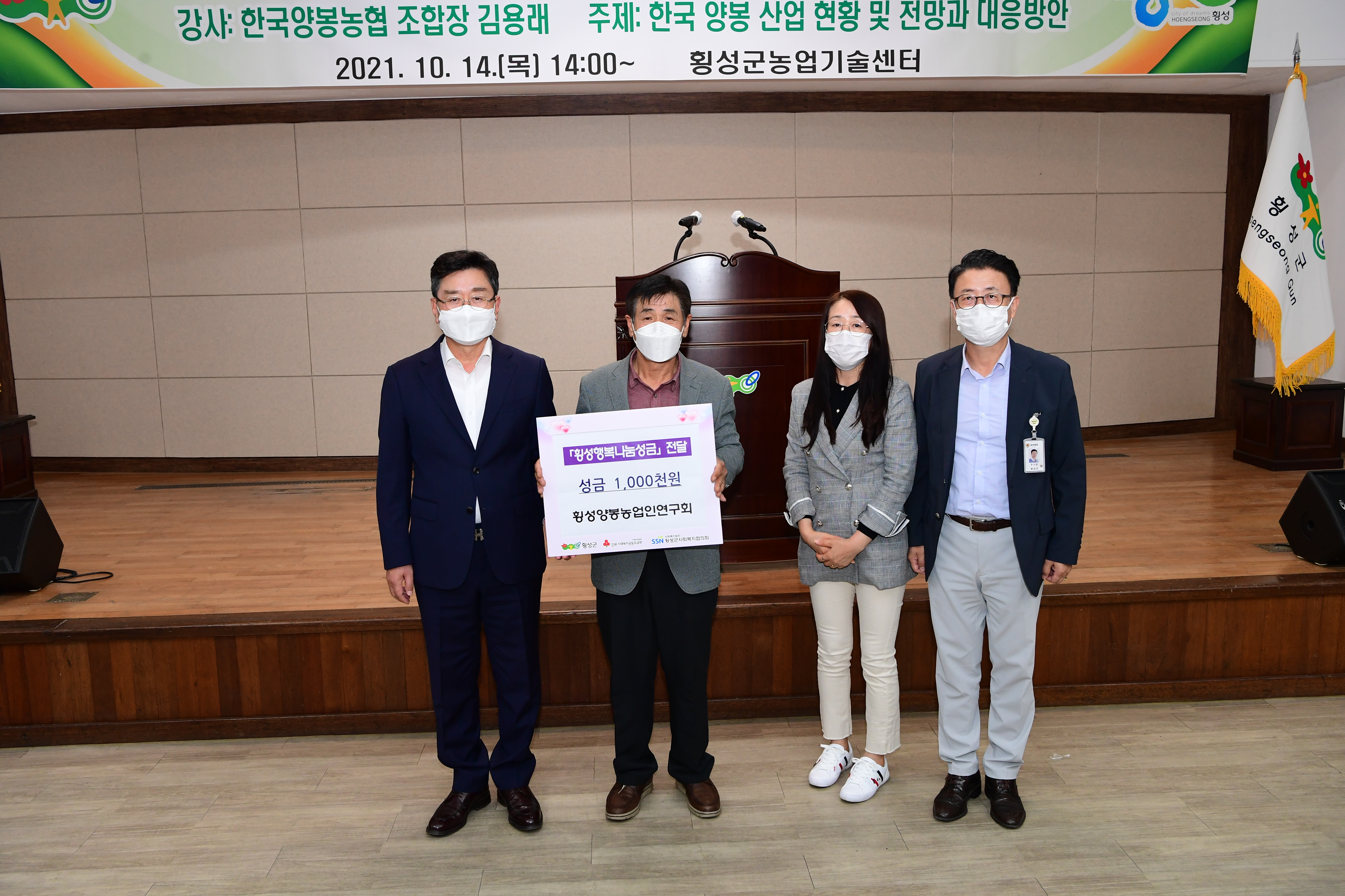 [강원사회복지신문 유경수 기자]=횡성양봉농업인연구회 (회장 윤상복)는 지난 10월 14일 오후 3시 10분, 횡성군농업기술센터 대강당에서 성금 1,000천원을 '횡성행복나눔성금'에 기탁했다. 이날 기탁식은 횡성양봉농업인연구회 교육 시간에 열렸으며, 기탁된 성금은 횡성군 관내 어려운 이웃을 위해 쓰여질 예정이다.