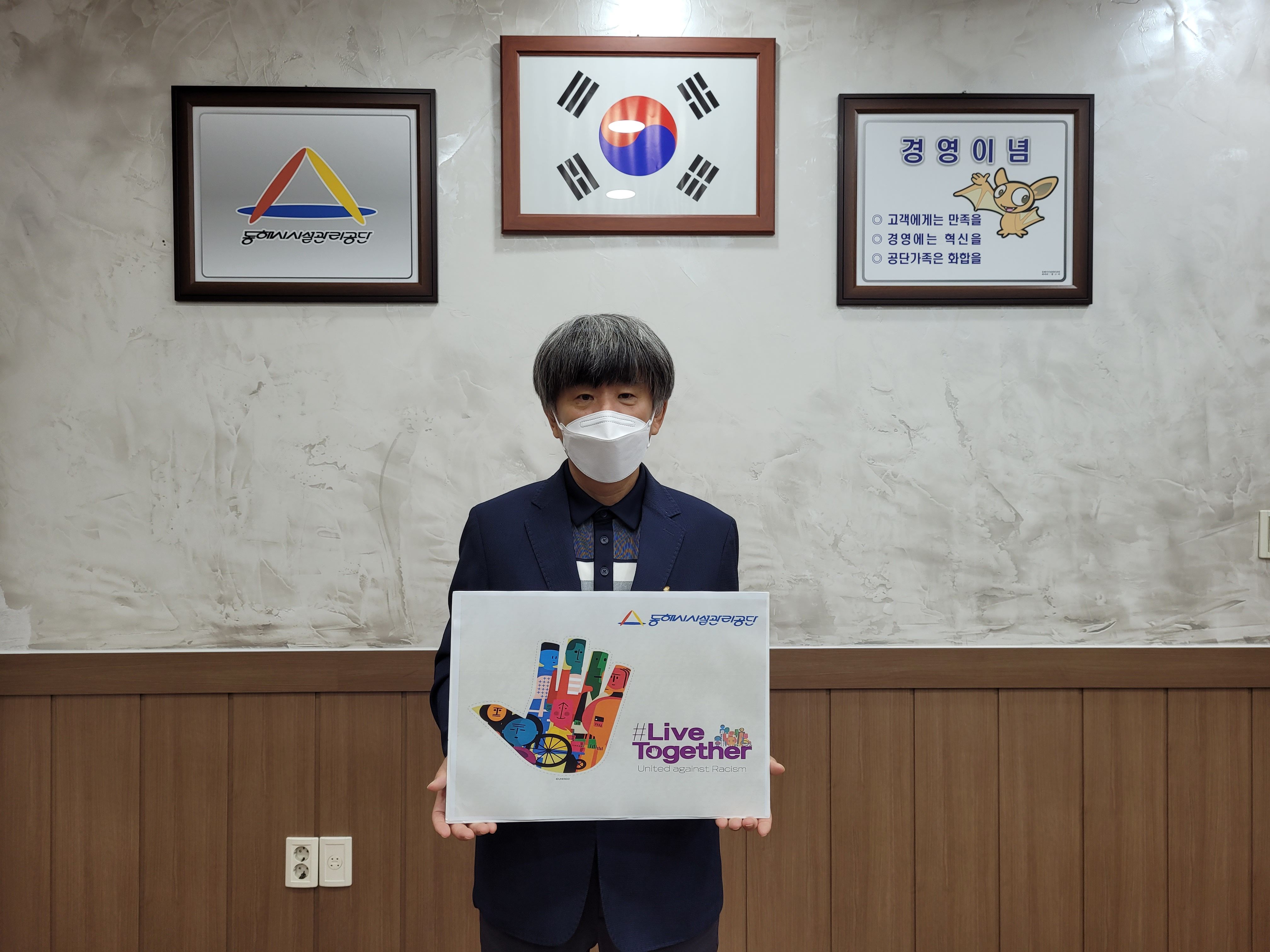 [강원사회복지신문 김종한 기자]=동해시시설관리공단(이사장 장덕일)은 지난 10월 12일 인종차별과 혐오범죄에 반대하는 'Live Together 캠페인'에 동참했다고 밝혔다. 'Live Together 캠페인'은 전 세계적으로 증가하고 있는 인종차별 및 혐오 범죄 대응을 위해 외교부와 유네스코가 공동으로 시작한 글로벌 캠페인으로, 인...