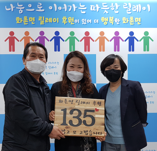 [강원사회복지신문 유경수 기자]=홍천군 화촌면 지역사회보장협의체가 후원문화 확산을 위해 진행하고 있는 '화촌면 릴레이 후원'에 홍천읍 소재 기업이 주자로 참여, 지역 사회에 훈훈함을 전하고 있다. 한명희 (주)보람전공 대표는 지난 10월 1일 화촌면 행정복지센터를 방문, 지역의 어려운 이웃을 위해 사용해 달라며 화...