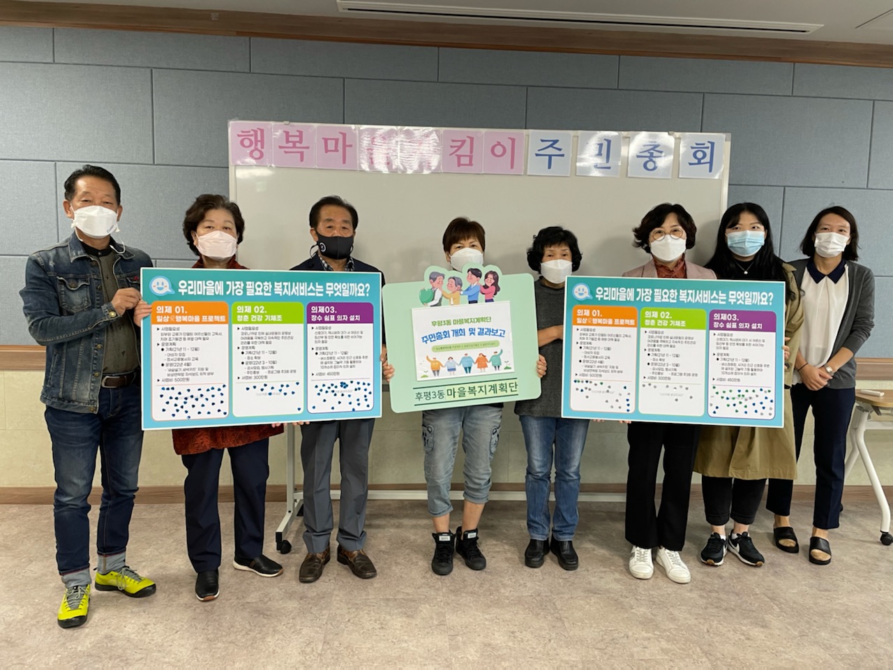 [강원사회복지신문 유경수 기자]=춘천시 후평3동 마을복지계획단(단장: 신장순)은 지난 10월 6일 후평3동 행정복지센터에서 마을복지의제 주민투표 결과 발표를 위한 주민총회를 개최했다.