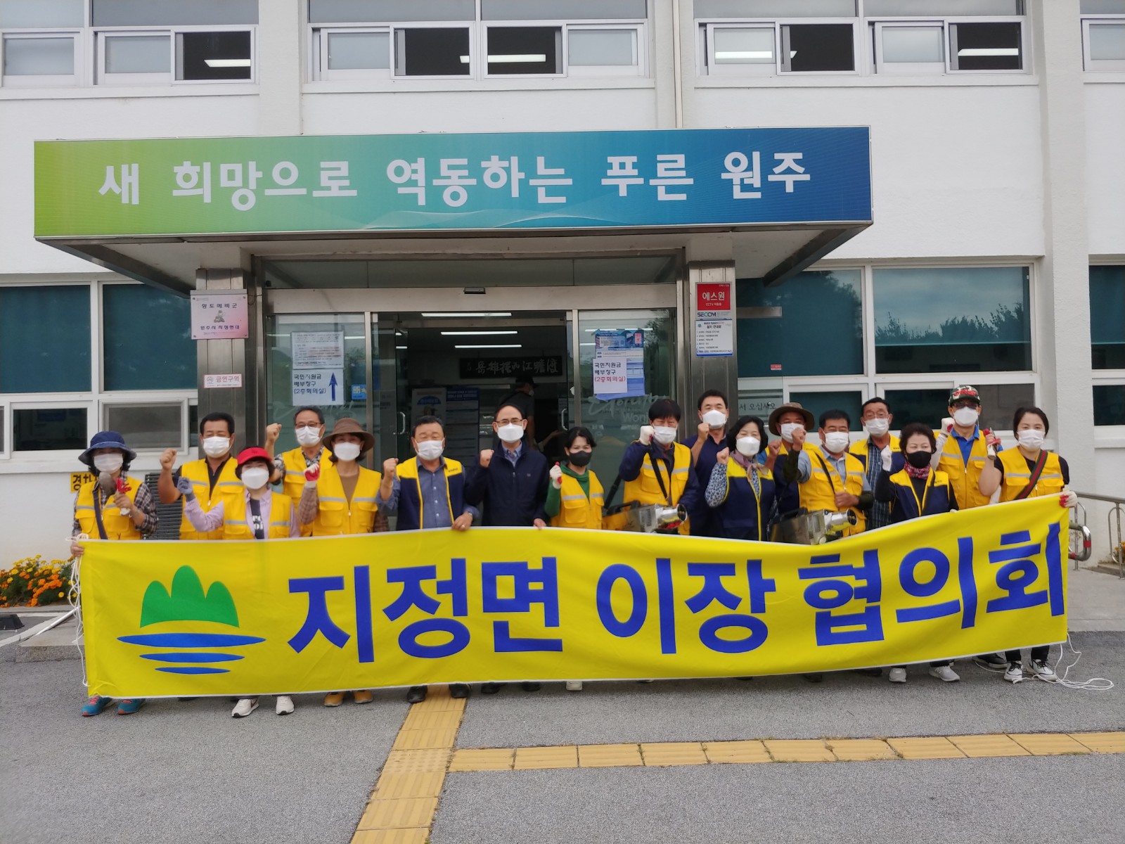 [강원사회복지신문 유경수 기자]=원주시 지정면 이장협의회(회장 정계봉)는 지난 9월 28일 지역 경로당 및 공공시설 등을 대상으로 코로나19 예방을 위한 방역을 실시하고, 주요 가로변 화분과 공터에 가을꽃 1,000여 본을 심었다.