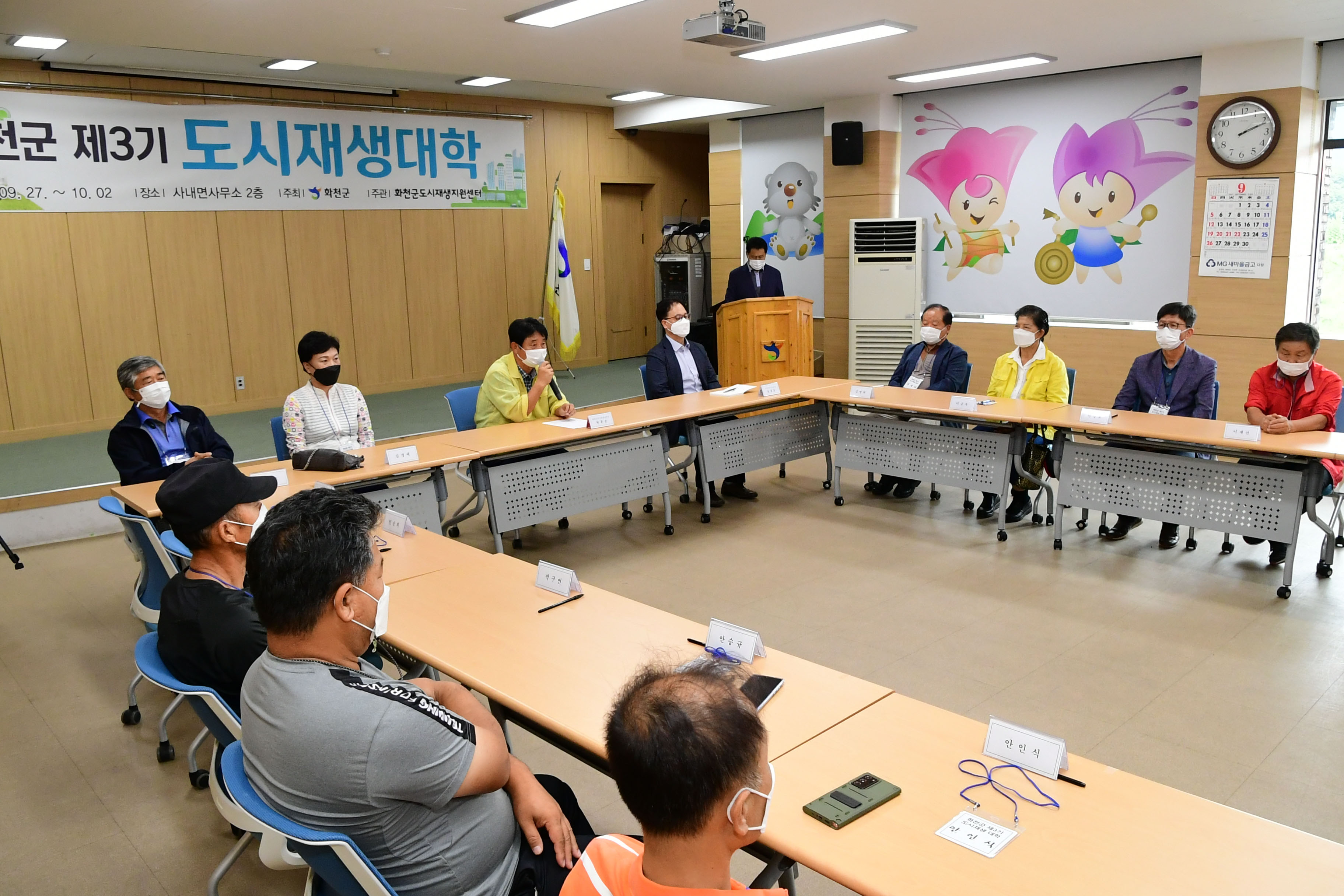 [강원사회복지신문 이정환 기자]=화천군 제3기 도시재생대학 개강식이 지난 9월 27일 화천군 사내면사무소에서 최문순 군수를 비롯한 주민들이 참석한 가운데 열렸다.