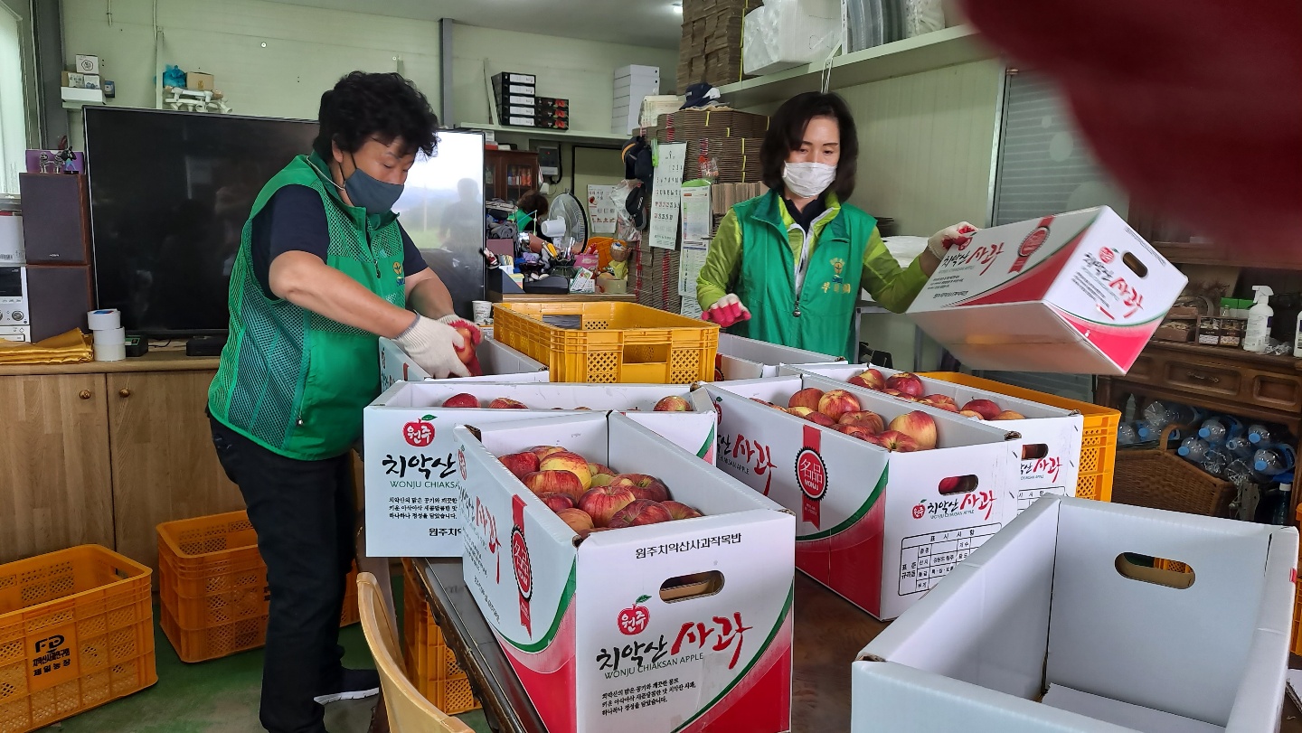 [강원사회복지신문 서은진 기자]=원주시 판부면 제일농장(대표 김태엽)은 지난 9월 28일 올해 수확한 1,100만 원 상당의 사과 230박스를 원주시 판부면 행정복지센터(면장 조애자)를 통해 관내 기초수급대상자 230가구에 전달했다.