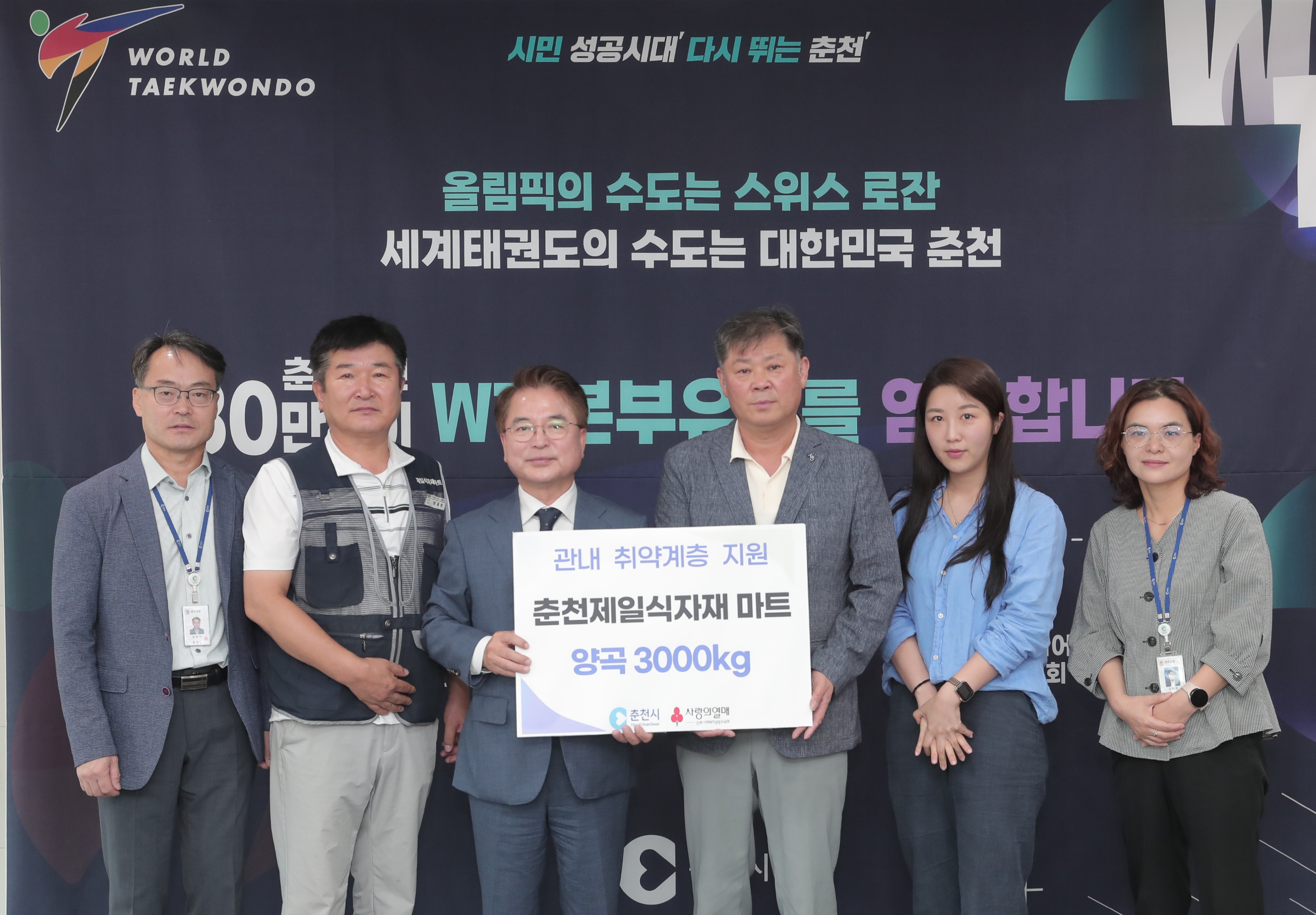 [강원사회복지신문 김도연 기자]=제일식자재마트는 지난 7월 13일 춘천시청 시장 접견실에서 양곡 300포를 춘천시에 전달했다.