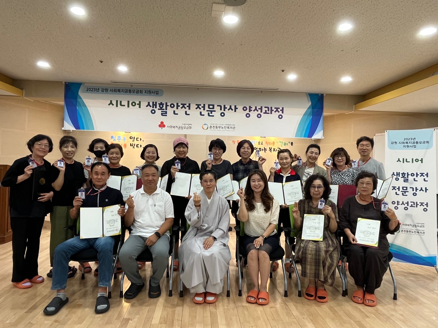 [강원사회복지신문 김도연 기자]=춘천동부노인복지관(관장 종세스님)은 지난 7월 13일 본 복지관 2층 강당에서 어르신 15명이 참석한 가운데 '시니어 생활안전 전문강사 양성교육(CPR)' 중간 평가회 및 수료식을 개최했다. 올해 3월 26일부터 시작된 시니어 생활안전 전문강사 양성교육(CPR)은 사회적협동조합 강사단과 지역...