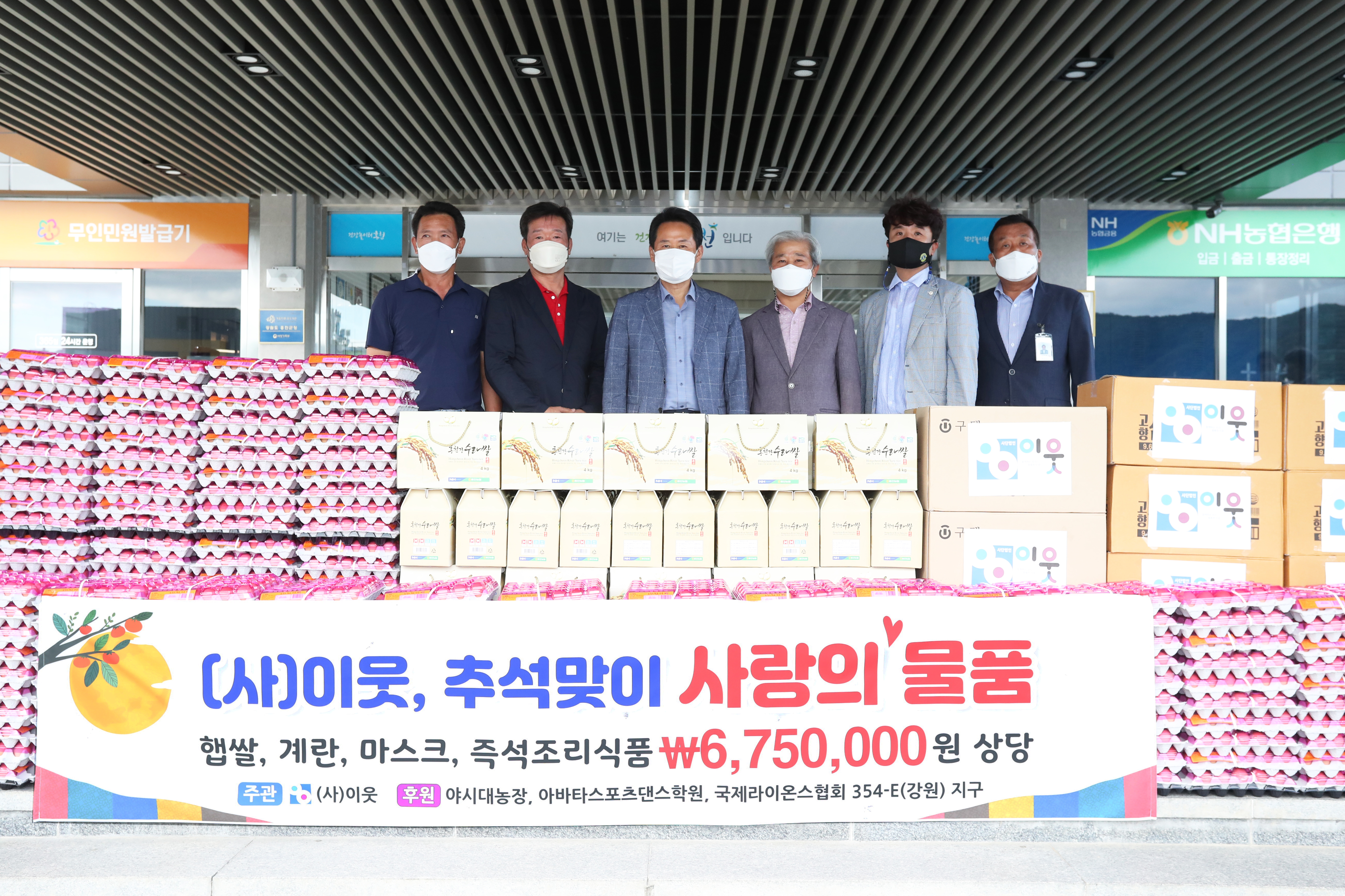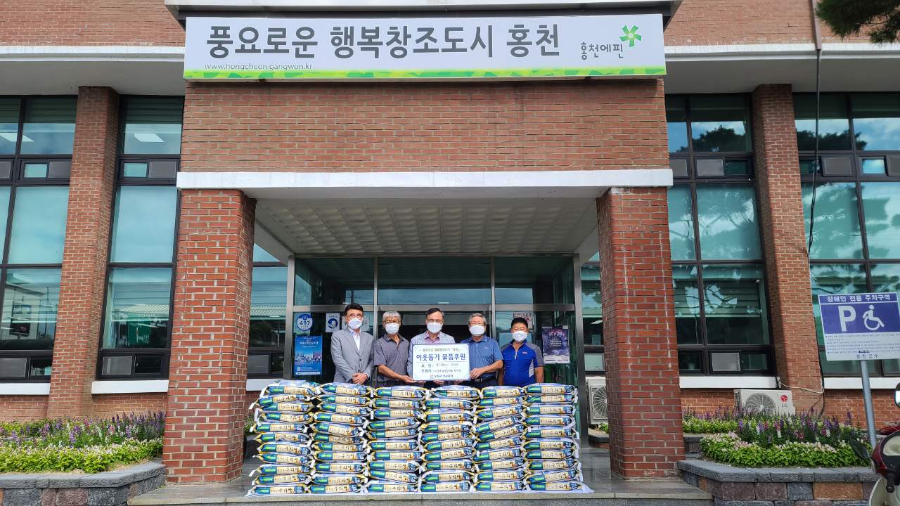 [강원사회복지신문 홍기한 기자]=사단법인 이웃(이사장 박학천)은 지난 9월 15일 홍천군청을 방문, 취약계층을 위한 675만원 상당의 농산물 및 생필품을 기부했다. 후원 물품은 햅쌀 100포(1포 4kg), 계란 500판, 마스크 5,000매, 간편식 삼계탕 100인분 등이며, 읍·면당 10가구씩 배부될 예정이다. 이번 추석맞이 사랑의 물...