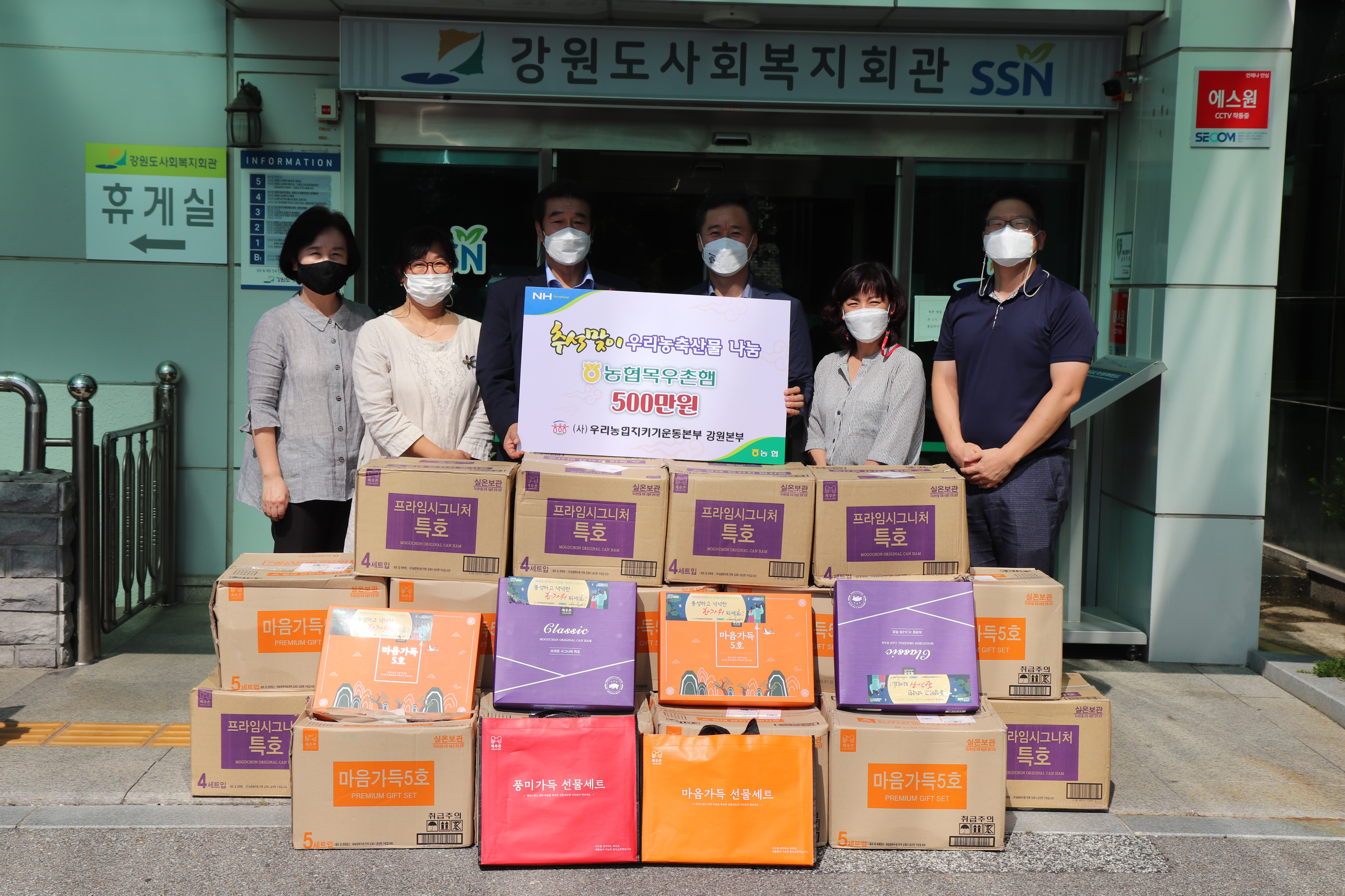[강원사회복지신문 유경수 기자]='추석맞이 우리농·축산물나눔' 전달식 개최 우리농업지키기운동본부강원본부(본부장 박종광)는 지난 9월 14일 강원도사회공헌정보센터(센터장 홍기종)에 농협 목우촌햄 90세트(500만원 상당)를 기탁하여 강원도사회복지회관에서 전달식을 가졌다. 이날 전달식에는 우리농업지키기운동본부강...