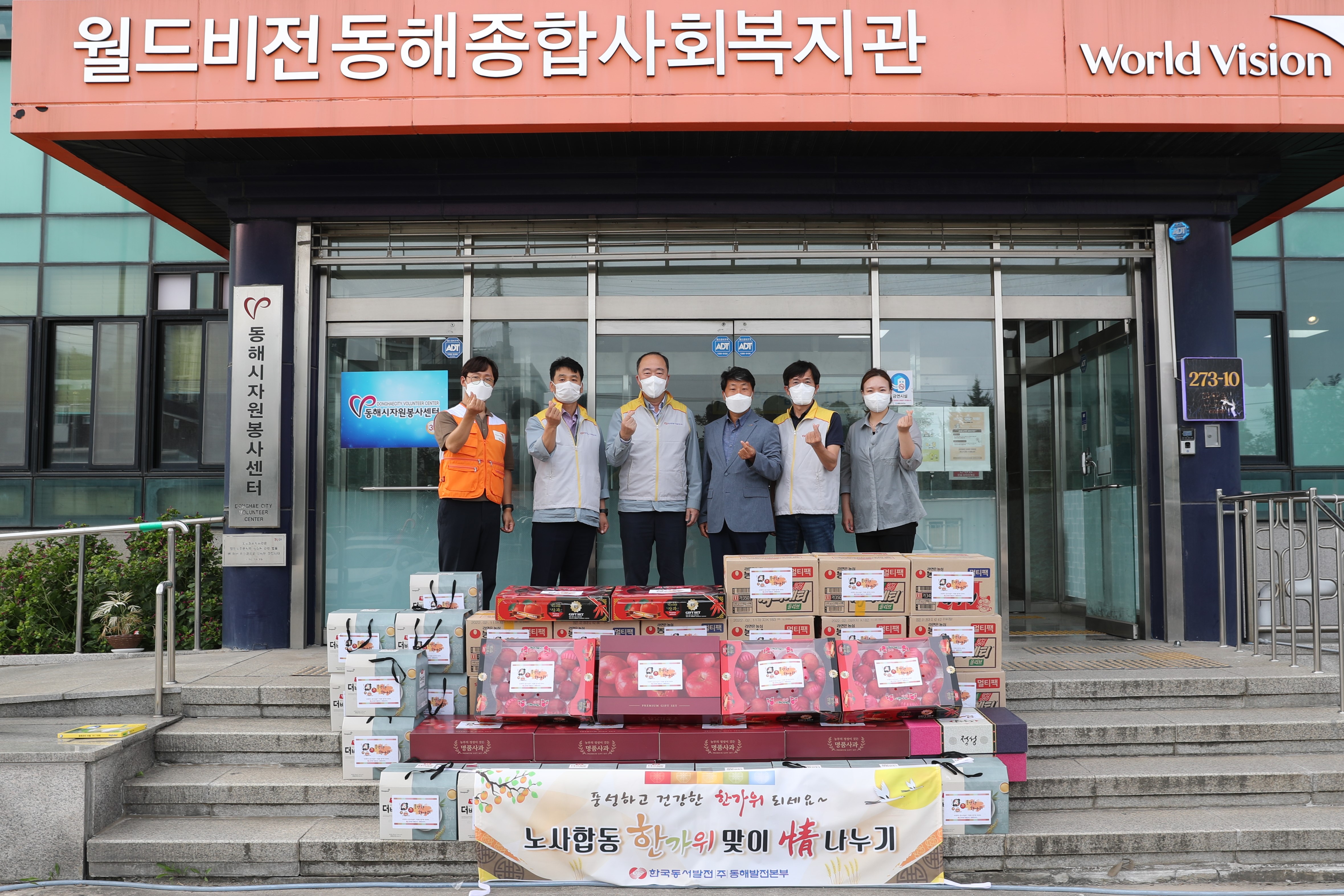 [강원사회복지신문 김종한 기자]=한국동서발전(주) 동해발전본부(본부장 남석열)는 지난 9월 13일 월드비전 동해종합사회복지관에서 본부장 및 노조위원장과 월드비전 동해종합사회복지관장이 참석한 가운데 노사합동 '한가위 맞이 情 나누기' 행사를 진행했다. 이번 행사는 코로나-19 감염병 장기화로 인해 침체된 사회 분위...