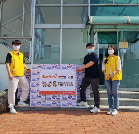 [강원사회복지신문 유경수 기자]=삼양식품(주) 유가공공장(대표 정태운·진종기)은 지난 9월 13일 다가오는 추석을 맞아 지역 저소득가구에 전달해 달라며 라면 50박스를 원주시 문막읍 행정복지센터에 기탁했다.