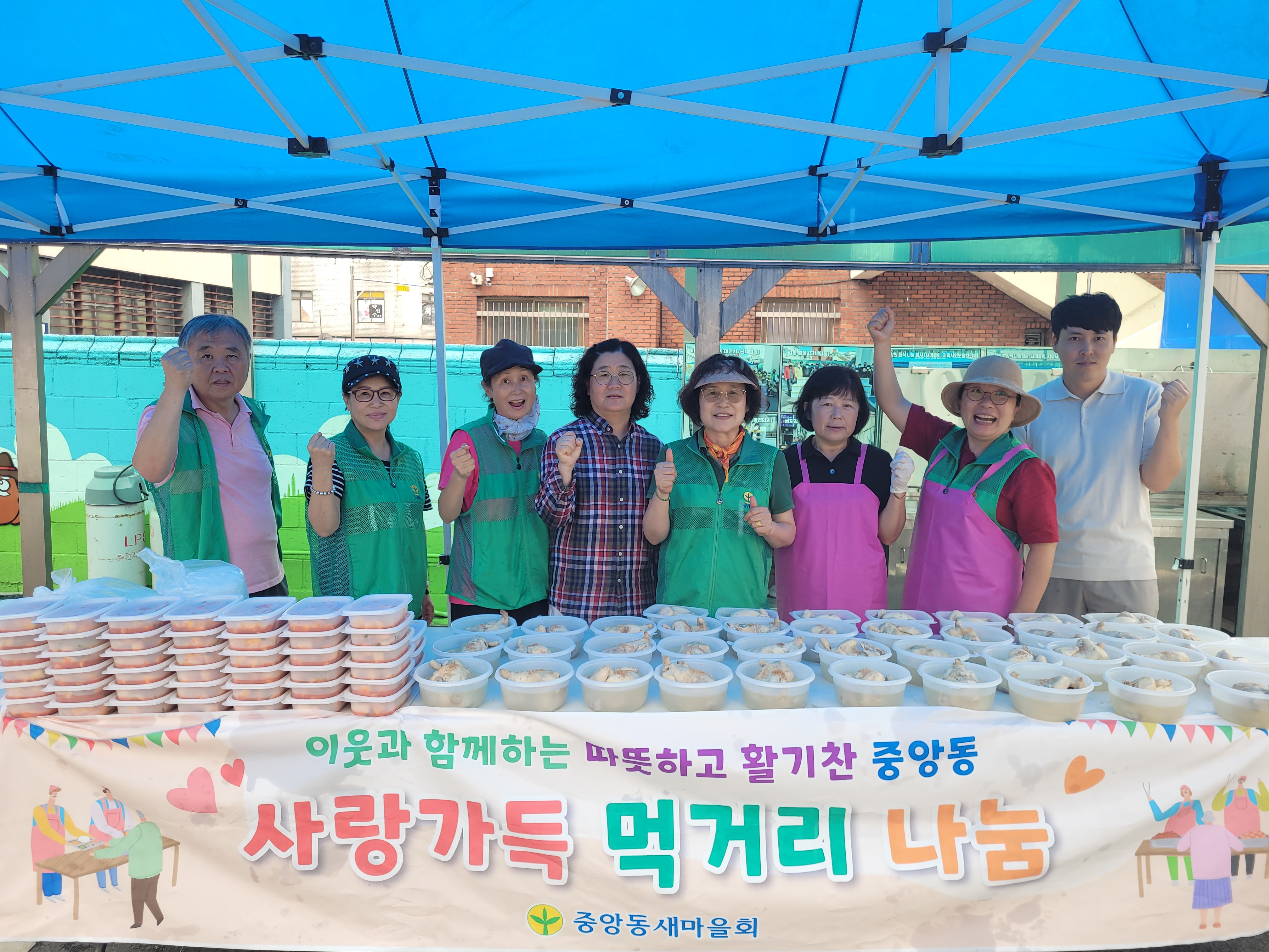 [강원사회복지신문 서은진 기자]=원주시 중앙동 새마을회(회장 김흥수, 이복순)는 지난 7월 13일 중앙동 행정복지센터에서 사랑 가득 먹거리 나눔 봉사를 실시했다. 이날 회원들은 정성스럽게 준비한 삼계탕 30그릇과 깍두기를 관내 어려운 이웃 30가구에 전달했다. 이복순 회장은 "주변에 도움이 필요한 이웃들이 무더위를 ...