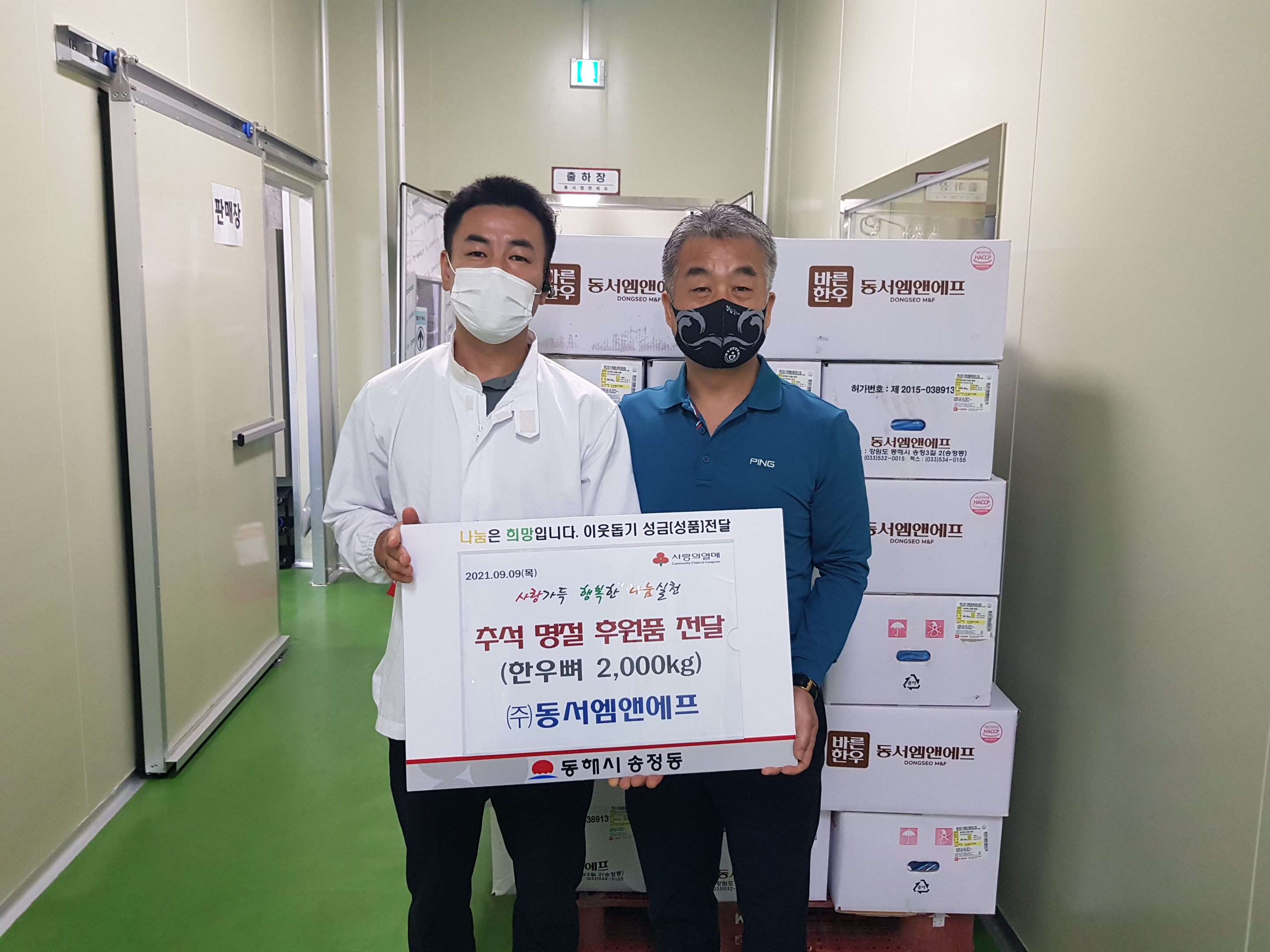 [강원사회복지신문 김종한 기자]=(주)동서엠앤에프(대표 조성래)는 추석명절을 맞이해 지난 9월 9일 동해시 송정동 내 저소득 가정에게 전달해 달라며 300만원 상당의 사골뼈 100상자(2,000kg)를 송정동 행정복지센터에 기탁했다. 후원물품은 지역사회보장협의체위원 및 통장과 함께 송정동의 기초수급자, 차상위계층 등 저소...