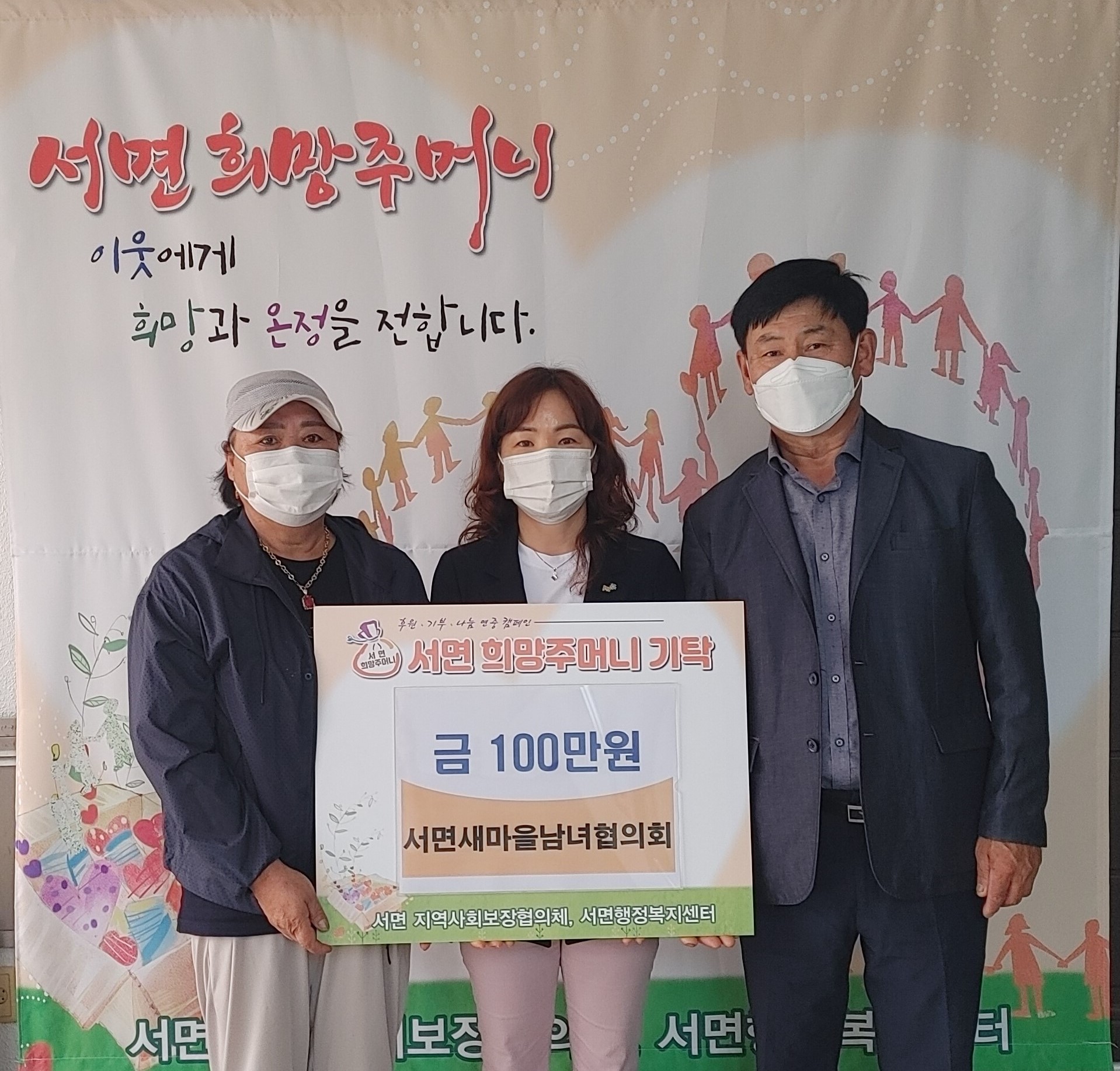 [강원사회복지신문 서은진 기자]=홍천군 서면 새마을남녀협의회(회장 유용석, 이청자)는 지난 9월 9일 홍천군 서면 행정복지센터를 방문, 지역의 어려운 이웃을 위해 사용해 달라며 성금 100만원을 기탁했다. 평소 지역을 위해 꾸준한 봉사활동을 전개하고 있는 서면 새마을남녀협의회는 매년 김장 나눔 행사 등을 통해 이웃...