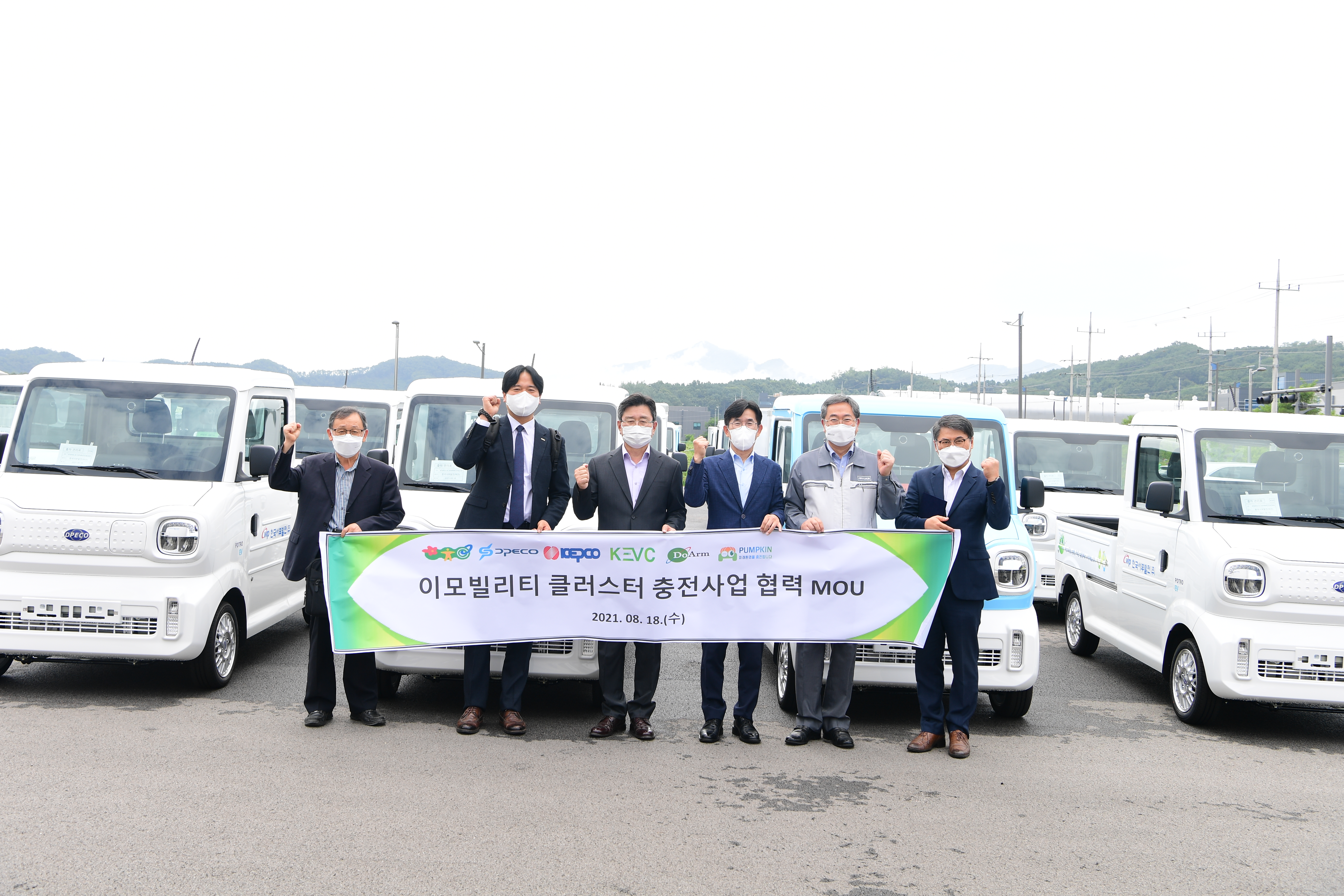 [강원사회복지신문 유경수 기자]=횡성군(군수 장신상)은 지난 8월 18일 오전 10시 30분 (주)디피코에서 이모빌리티 충전인프라 구축 협력을 위한 업무협약을 체결하였다고 밝혔다. 이날 협약식에는 장신상 군수를 비롯해 금동진 한국전력공사 횡성지사장과 (주)디피코, 한국이브이충전기(주), (주)도암엔지니어링, (주)펌프킨...
