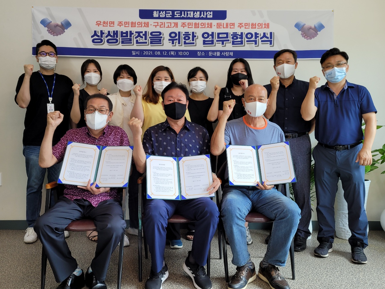 [강원사회복지신문 홍기한 기자]=횡성읍 구리고개·둔내면·우천면쇠목골 도시재생주민협의체 3자간 상생협약 체결 횡성읍 구리고개주민협의체(회장 박창현)와 둔내면주민협의체(회장 이근석), 우천면쇠목골주민협의체(회장 김제환)는 횡성군 도시재생사업의 자생적 운영과 주민협의체 활성화를 위해 지난 8월 12일 오전 10시...