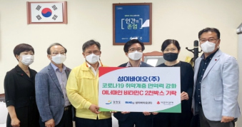 [강원사회복지신문 유경수 기자]=성이바이오(주), 코로나19 면역력 강화를 위한 건강기능식품 후원 강원도는 지난 8월 10일(화) 원주 기업도시 입주업체인 (주)성이바이오(대표 전통규)와 코로나19 취약계층 면역력 강화를 위한 후원물품(건강기능식품 비타민 C, 18,000천원 상당) 전달식을 하였다. 전달식에는 (주)성이바이...
