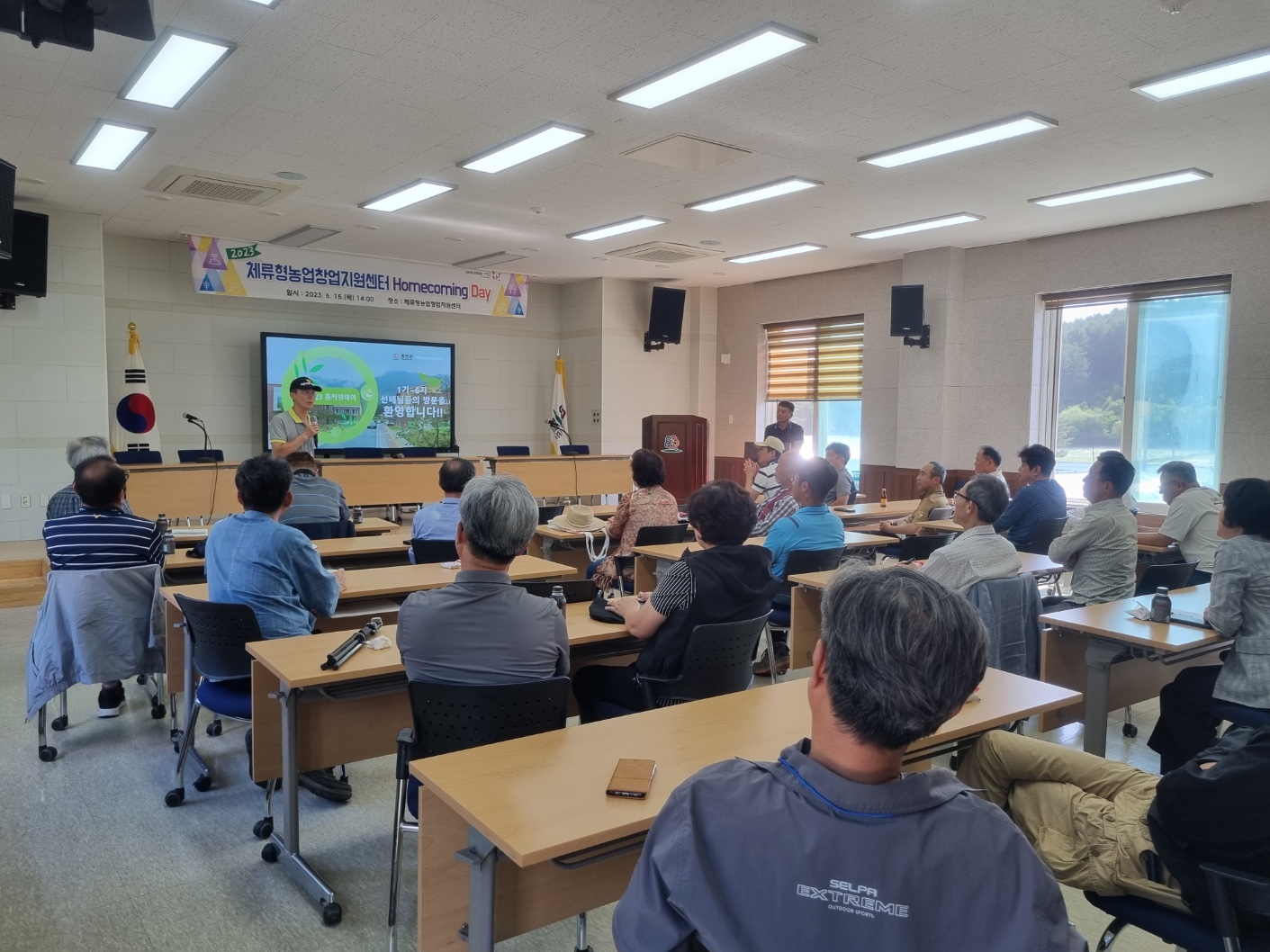 [강원사회복지신문 이정환 기자]=홍천군농업기술센터(소장 문명선)는 홍천군 농업창업지원센터 '홈커밍 데이'를 개최했다. 지난 수료생(1기~6기)과 금년도 교육에 참여하고 있는 7기 교육생들의 만남의 자리인 이번 행사는 지난 6월 15일 오후2시 홍천군 체류형 농업창업지원센터에서 진행되었다. 홈커밍 데이는 후배들이 묻...