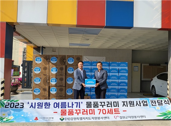 [강원사회복지신문 이정환 기자]=철원군자원봉사센터(센터장 : 진익태)는 지난 6월 14일 철원군드림스타트에 방문하여 시원한여름나기 물품꾸러미키트 70세트를 전달했다. 이날 전달한 물품꾸러미는 사회복지공동모금회, 강원특별자치도자원봉사센터의 후원으로 제작되었으며, 지역사회의 소외된 이웃을 돌아보고 폭염에 취약...