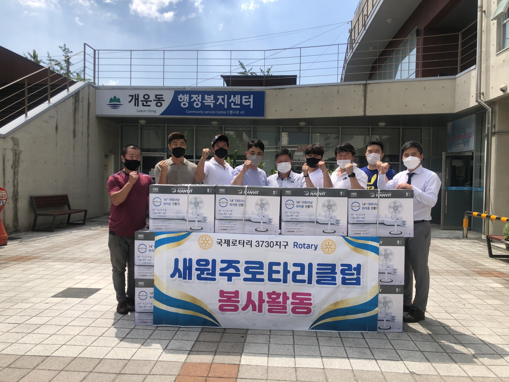 [강원사회복지신문 서은진 기자]=3730지구 새원주로타리클럽(회장 송이만)은 지난 7월 26일 지역 저소득층의 건강한 여름나기를 위해 원주시 개운동 25가구와 명륜1동 20가구 등 총 45가구에 선풍기를 후원했다.