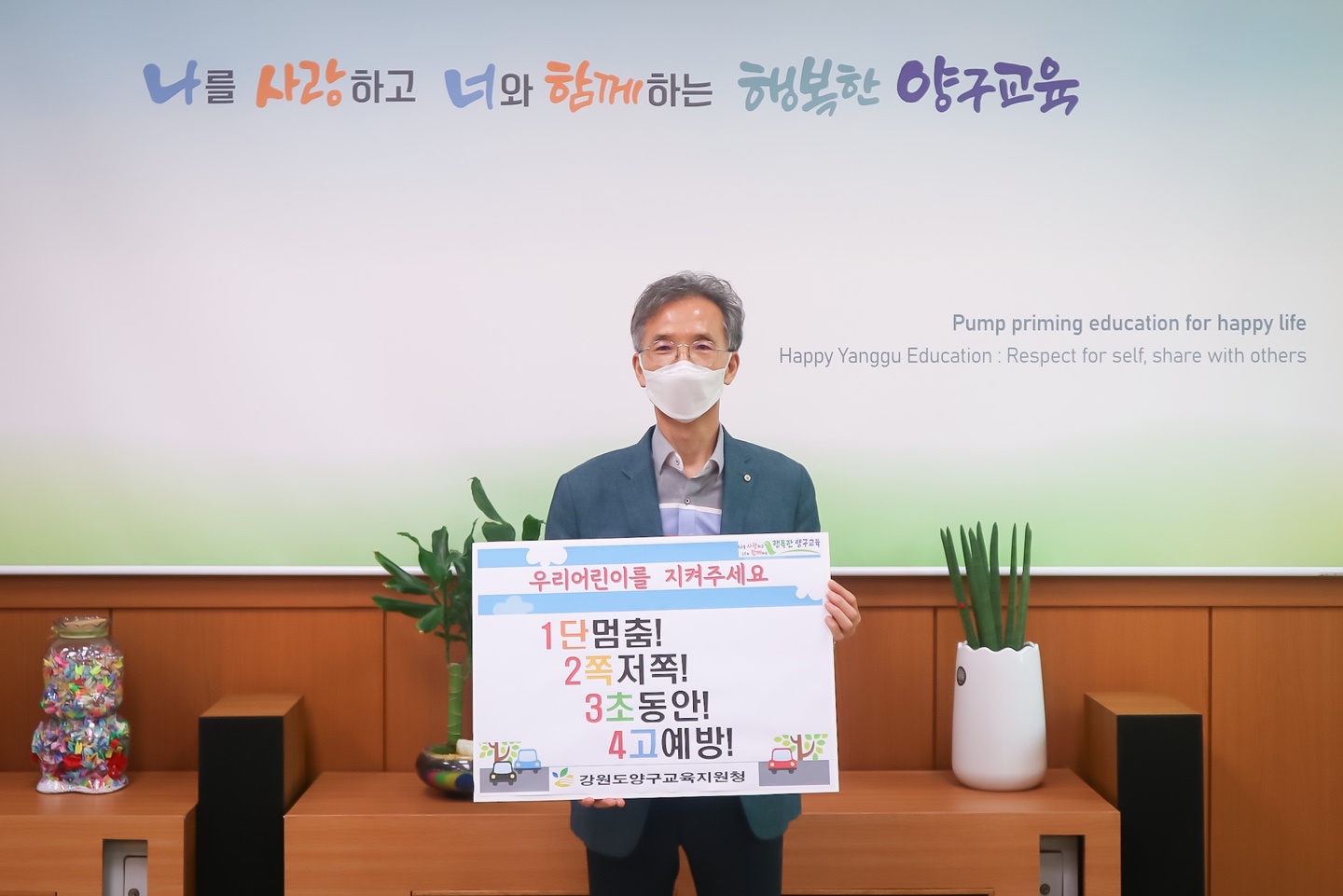 [강원사회복지신문 이정환 기자]=강원도양구교육지원청 홍성수 교육장은 지난 7월 15일 어린이 보호구역 내 교통사고 예방에 대한 범국민적인 공감대 형성과 안전한 교통문화 확산을 응원하는 챌린지에 동참하였다.