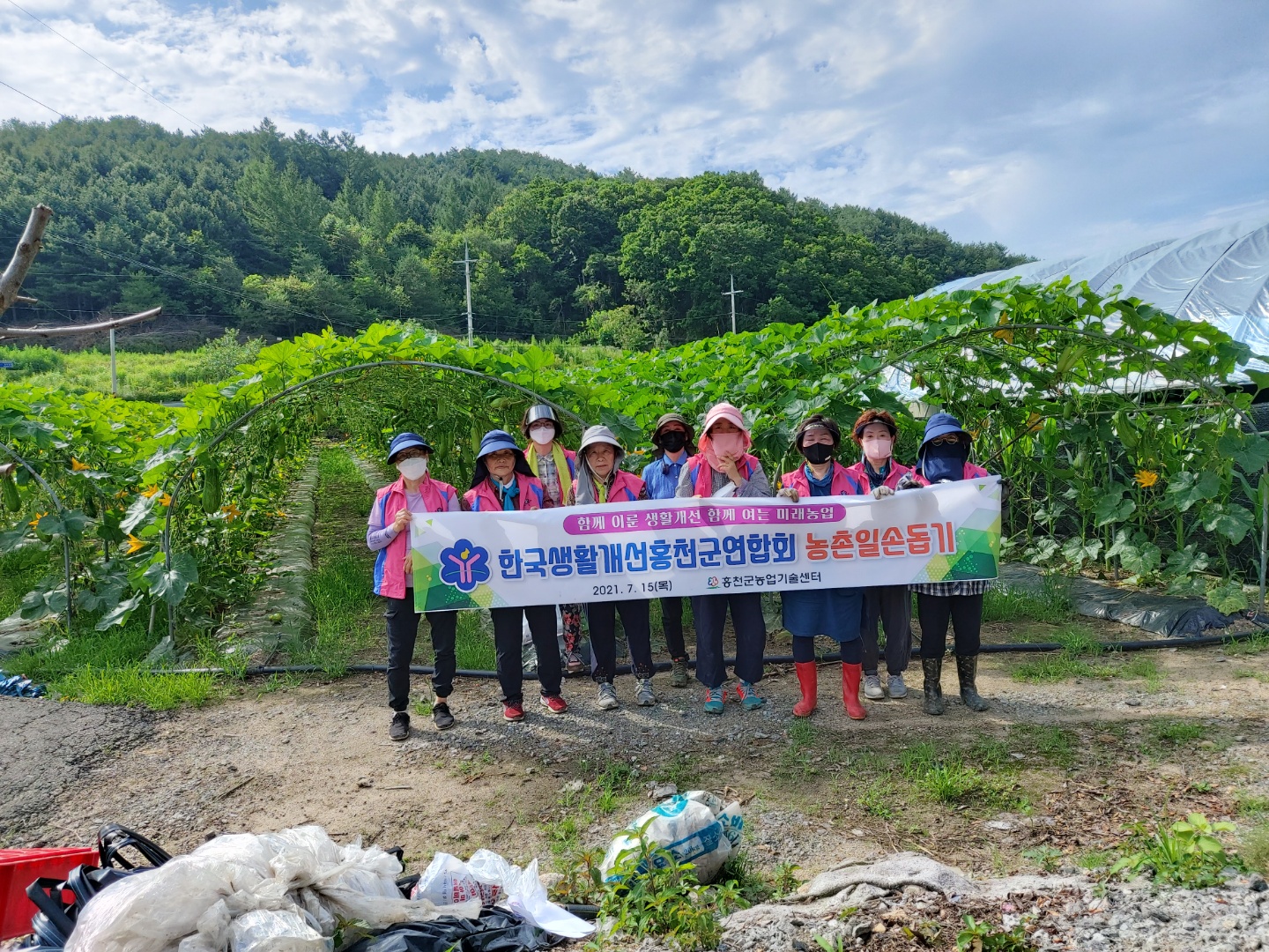 [강원사회복지신문 홍기한 기자]=한국생활개선회 홍천군연합회(회장 송영미)는 지난 7월 15일 내촌면 서곡리의 한 농가에서 농촌 일손 돕기 활동을 전개했다. 회원 10여명은 오전 5시부터 오전 9시까지 일손이 부족한 농가에서 오이순치기, 오이따기, 호박순따기 등을 실시했다.