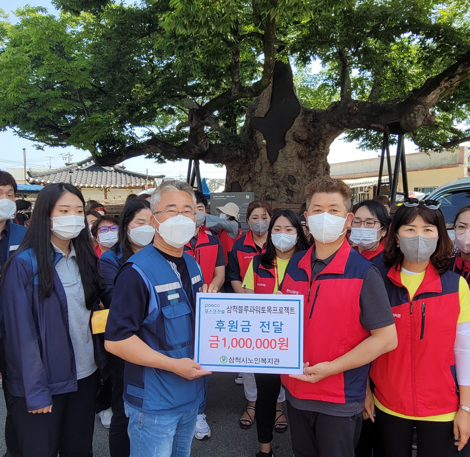 [강원사회복지신문 김종한 기자]=삼척블루파워(대표 옥인환)와 포스코건설 삼척블루파워토목프로젝트(단장 김순주)에서는 지난 7월 1일(목) 11시에 열린 근덕면 전통시장 활성화 '돈쯜내자 전통시장'를 위해 삼척시노인복지관에 후원금 각각 100만원을 후원하였다. 삼척시노인복지관에서는 후원금으로 삼척사랑상품권을 구입...