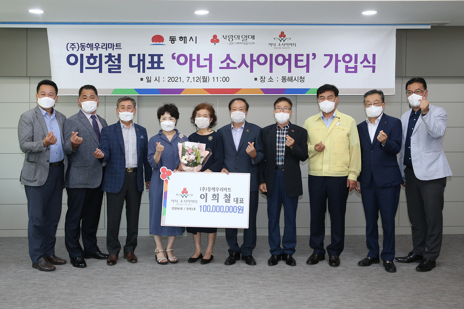 [강원사회복지신문 김종한 기자]=코로나19로 모두가 힘든 시기를 보내고 있는 가운데 동해시 내 아너 소사이어티 4호 회원이 탄생했다. 주인공은 지역 로컬마트인 (주)동해우리마트 이희철 대표다. 회원 가입식은 지난 7월 12일 11시 동해시청에서 심규언 동해시장, 유계식 강원사회복지공동모금회장, 이상욱 강릉권역 아너 ...