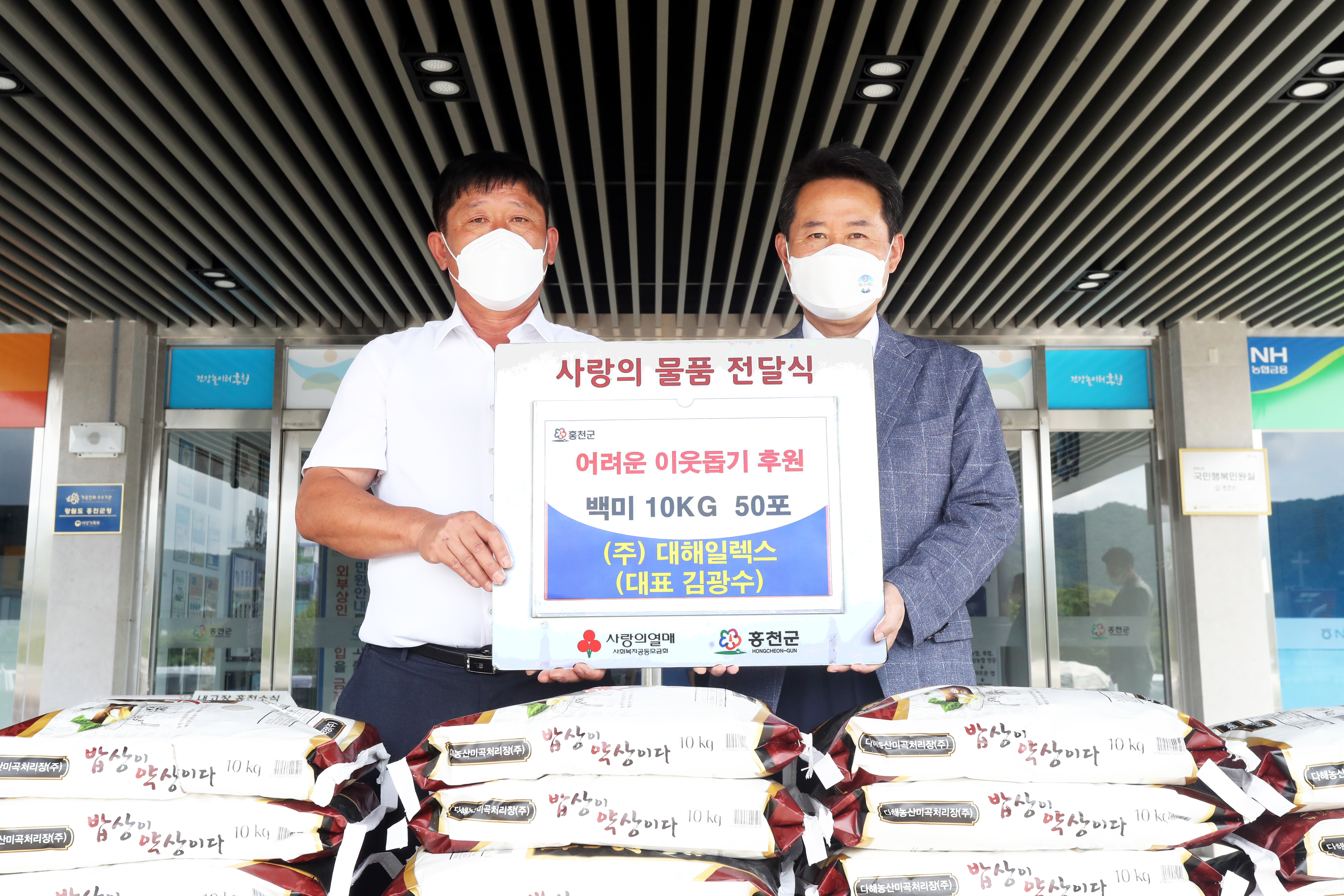 [강원사회복지신문 홍기한 기자]=(주)대해일렉스(대표 김광수)는 지난 7월 9일 홍천군청을 방문, 관내 저소득가구에 전달해 달라며 쌀 50포(1포 10kg)를 전달했다. 김광수 대표는 "나눔의 작은 실천이 어려운 이웃에게 힘이 될 수 있기를 바란다"며 "홍천군에 뿌리를 내린 만큼 (주)대해일렉스는 지역과의 상생에 초점을 맞춘...