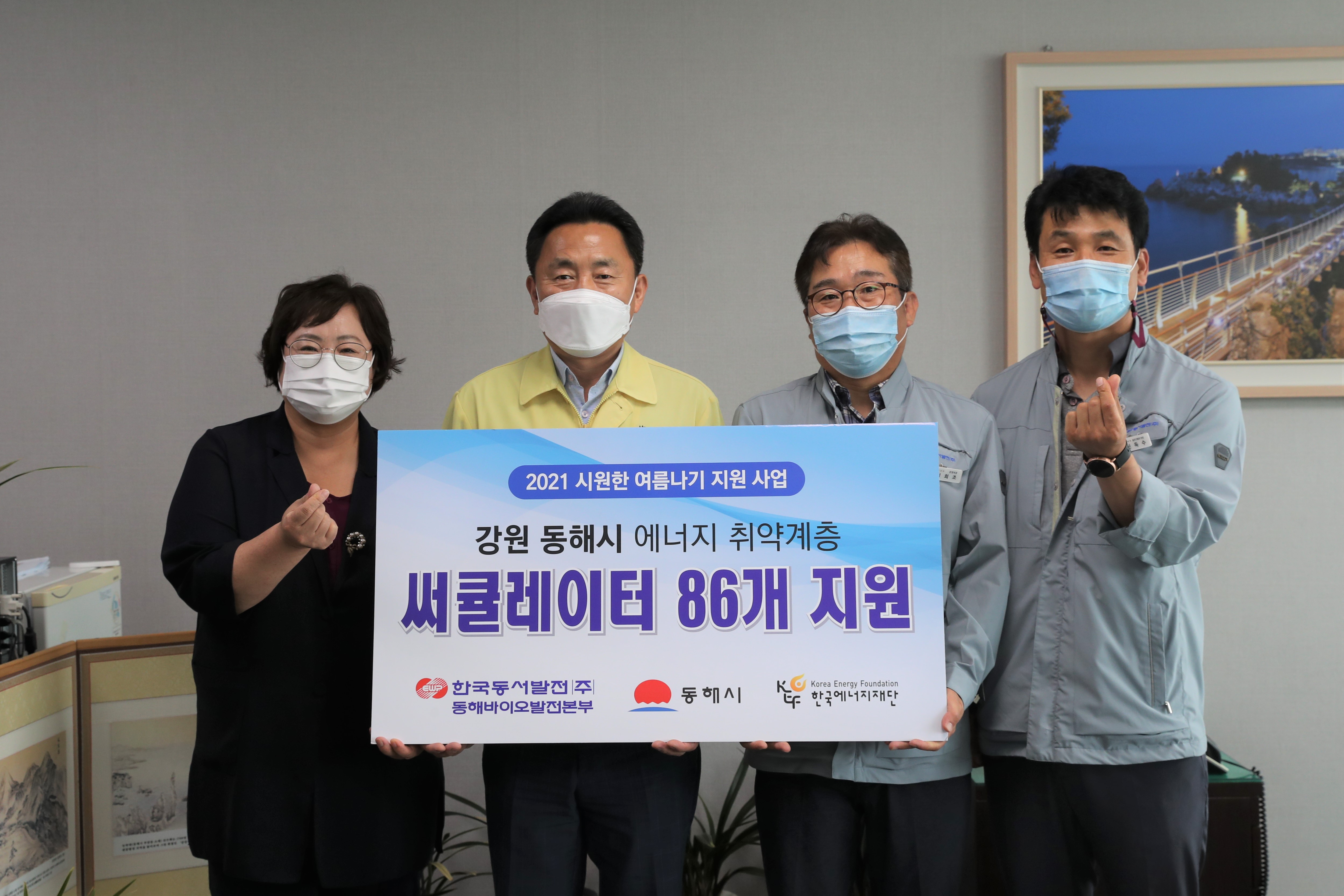 [강원사회복지신문 김종한 기자]=한국동서발전(주) 동해바이오발전본부(본부장 남석열)는 지난 7월 7일 동해시청에서 에너지 취약계층의 시원한 여름나기를 지원하기 위한 '2021 시원한 여름나기 냉방용품' 전달식을 시행했다고 밝혔다. 동해바이오발전본부는 복지사각지대에 놓인 차상위계층 86가구에 500만원 상당의 여름나...