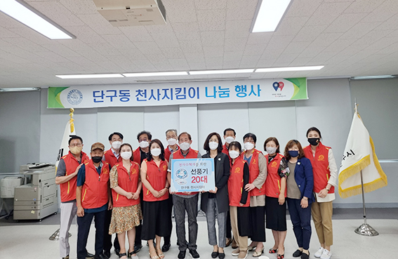 [강원사회복지신문 서은진 기자]=원주시 단구동 천사지킴이(대표 김길선)는 지난 6월 28일 무더위에 취약한 독거노인 및 장애인 가구를 위해 선풍기 20대를 단구동 행정복지센터에 전달했다.
