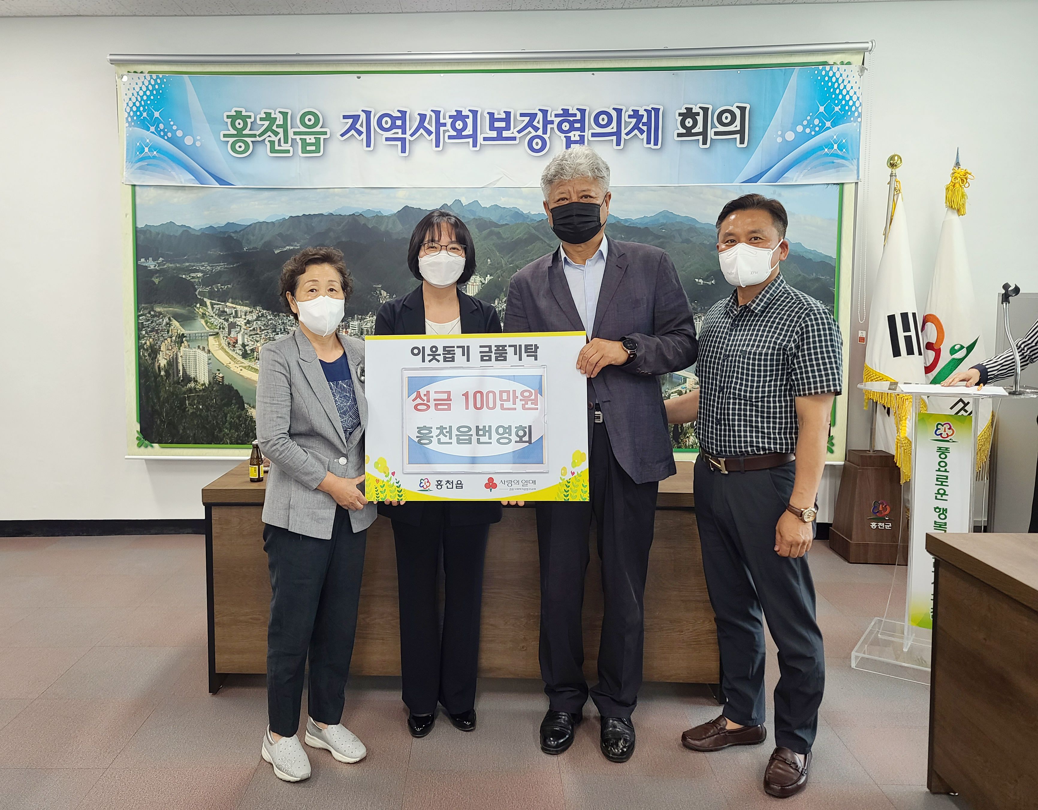 [강원사회복지신문 홍기한 기자]=홍천읍 번영회(회장 함충도)는 지난 6월 28일 홍천읍 행정복지센터를 방문, 어려운 이웃돕기 성금 100만원을 전달했다. 함충도 회장은 "번영회 회원들의 뜻을 모아 지역 내 형편이 어려운 취약계층을 돕고자 성금을 기탁하게 됐다"며 "읍 지역사회보장협의체를 통한 사업에 사용됐으면 좋겠다...