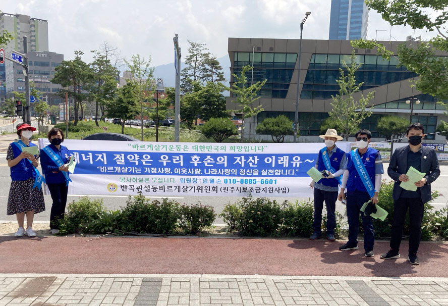 [강원사회복지신문 서은진 기자]=원주시 반곡관설동 바르게살기위원회(위원장 임월순)는 지난 6월 14일 심평원 사거리 등 혁신도시 일원에서 에너지 절약 캠페인을 전개했다. 회원들은 최근 날씨가 더워지고 전력 사용량이 급증함에 따라 생활 속에서 쉽게 실천할 수 있는 대기전력 차단 콘센트를 시민들에게 나눠주며 에너지...
