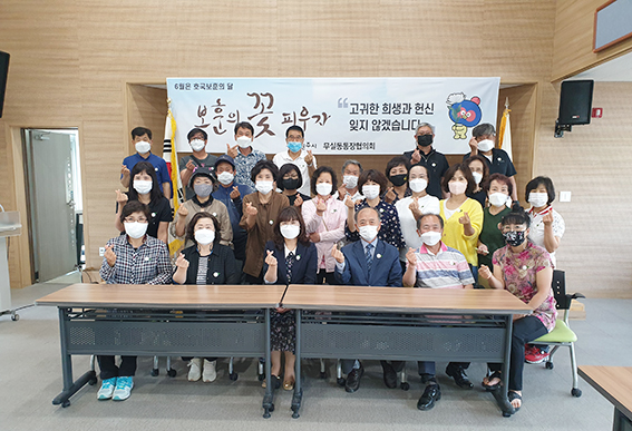 [강원사회복지신문 서은진 기자]=원주시 무실동 통장협의회(회장 김동찬)는 6월 호국보훈의 달을 맞아 지난 6월 10일 '보훈의 꽃 피우자' 챌린지에 동참한다. 호국영령의 숭고한 정신을 기리기 위해 6월 한 달간 고결, 평화, 절개를 상징하는 '보훈의 꽃'을 패용하고, 인증사진을 SNS 등에 홍보할 예정이다. 무실동 통장협의...