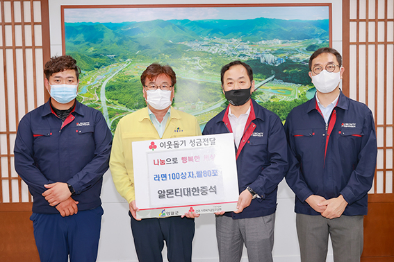 [강원사회복지신문 홍기한 기자]=(주)알몬티대한중석(대표:이종만)은 지난 6월 7일 쌀 80포, 라면 100상자(600만원 상당)를 영월군에 기탁했다. 기탁자는 "코로나19 장기화로 어려움을 겪고 있는 지역 취약계층에게 작은 위로가 되길 바라며 기탁하게 되었다."라고 전했다. 기탁된 성품은 기탁자의 뜻에 따라 관내 취약계층에...