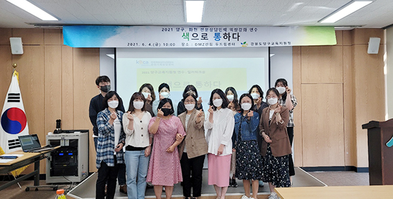 [강원사회복지신문 이정환 기자]=강원도양구교육지원청(교육장 홍성수) Wee센터는 지난 6월 4일(금)에 양구 DMZ산림 두드림센터에서 양구, 화천 전문상담인력을 대상으로 '2021 양구, 화천 전문상담인력 역량강화연수'를 실시했다. 이번에 실시하는 '2021 양구, 화천 전문상담인력 역량강화연수'는 '색(色)다른 만남'이라는 ...