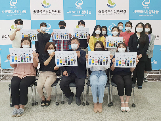 [강원사회복지신문 홍기한 기자]=춘천북부노인복지관은 동부노인복지관의 지목을 받아 '필수노동자 릴레이 응원캠페인'에 동참했다. 이 캠페인은 코로나19의 감염 위험에 가장 가깝게 노출돼 있음에도 불구하고 업무 특성상 보건의료, 돌봄, 환경, 미화, 복지, 안전, 물류, 운송 등 불가피하게 대면 업무를 수행해야 하는 필...