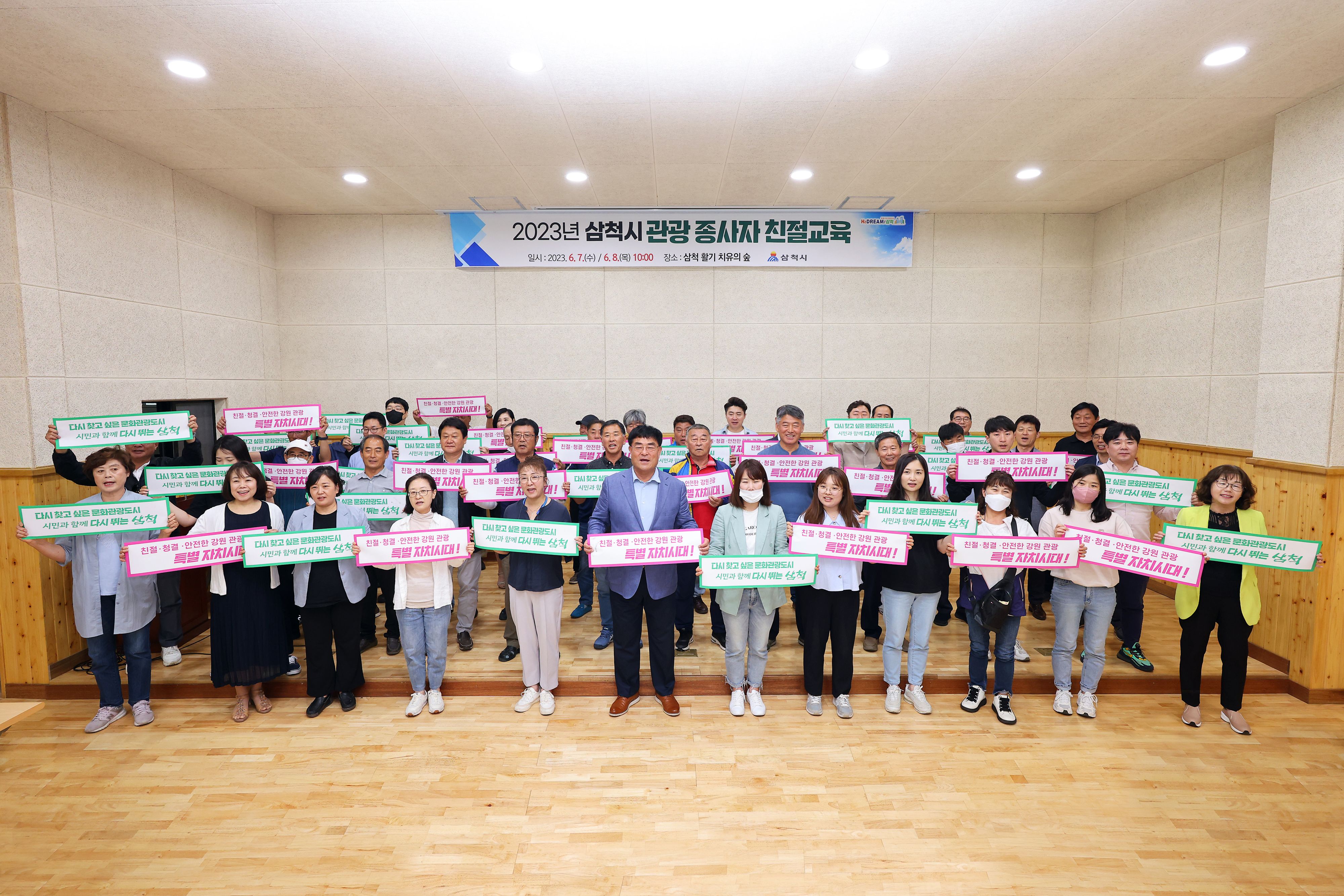 [강원사회복지신문 홍기한 기자]=삼척시는 본격적인 여름 휴가철을 대비하여 '2023년 삼척시 관광 종사자 친절교육'을 지난 6월 7일과 8일, 이틀간 삼척 활기 치유의 숲에서 개최하였다고 밝혔다. 이번 교육은 주요 관광지 종사자, 해수욕장·마을관리휴양지 관리자, 야영장업 및 관광펜션업 운영자, 삼척시 문화관광해설사 ...