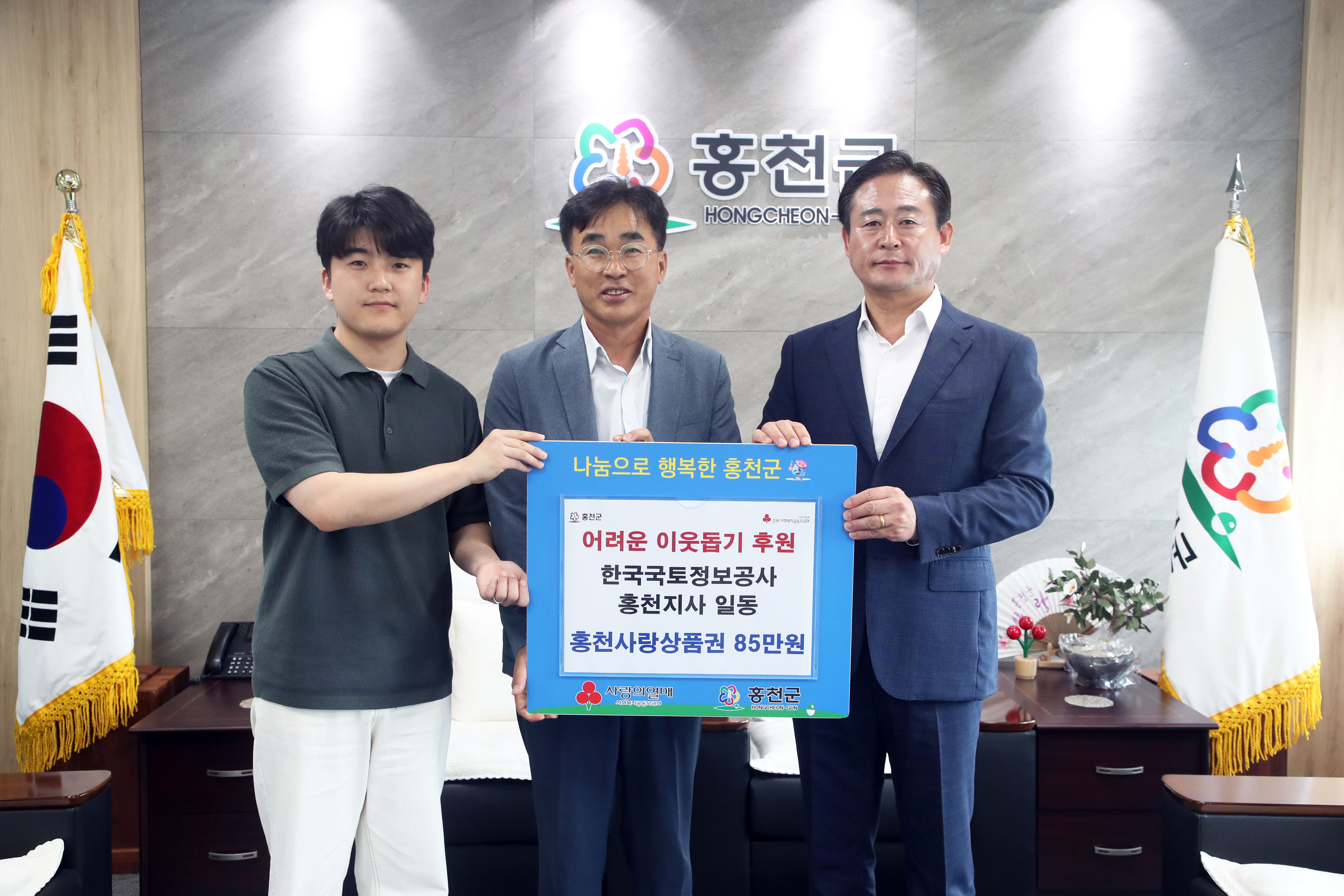 [강원사회복지신문 홍기한 기자]=한국국토정보공사 홍천지사(지사장 서영하)는 지난 6월 2일 홍천군청을 방문, 어려운 이웃돕기에 홍천사랑상품권 85만원을 기탁했다. 한국국토정보공사 홍천지사 정국현 수석은 "직원들이 십시일반 모은 성금을 지역상품권인 홍천사랑상품권으로 기부하는 것이 더 의미 있을 것으로 생각되어...