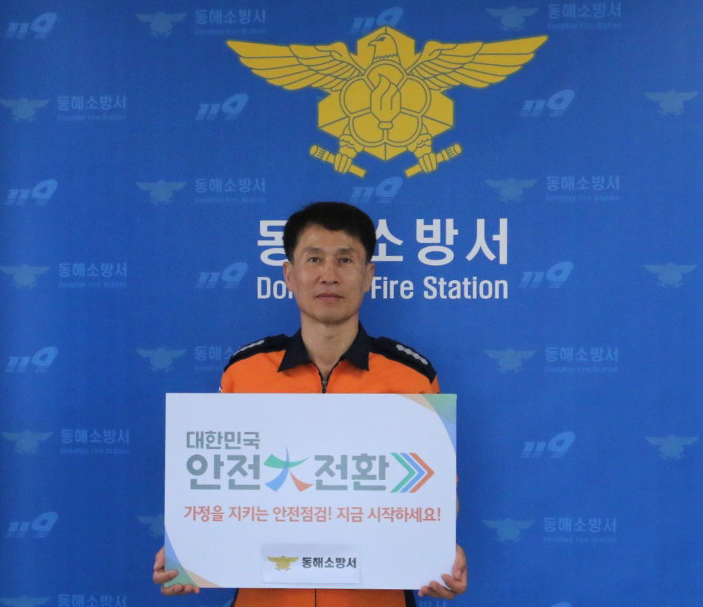 [강원사회복지신문 김종한 기자]=동해소방서(서장 김춘식)는 지난 6월 1일 '집중안점점검 기관장 릴레이 캠페인'에 참여했다. 이번 캠페인은 동해시에서 주관하여 가정 내 안전사고를 예방하고 안전문화를 확산하고자 마련됐다. 김춘식 서장은 "가정 내 안전문화 정착을 위해 많은 관심과 참여 부탁드린다"고 말했다.