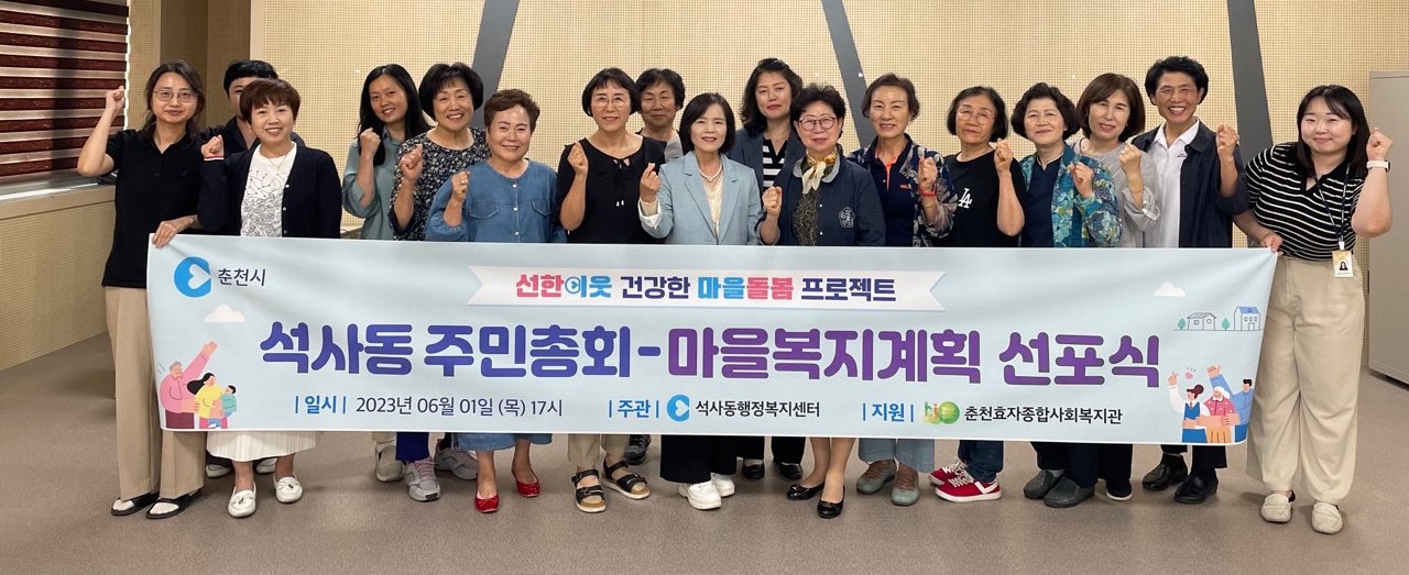 [강원사회복지신문 김도연 기자]=춘천시 석사동 행정복지센터(동장 박성숙)는 지난 6월 1일 춘천효자종합사회복지관과 함께 마을복지계획 주민총회 진행했다.