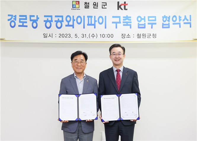 [강원사회복지신문 이정환 기자]=철원군(군수 이현종)은 '철원군 경로당 공공와이파이 구축사업'의 원활한 추진을 위해 지난 5월 31일 KT와 업무 협약을 체결했다고 밝혔다. 군은 협약에 따라 올해 7월부터 127개 경로당에 어르신들의 통신요금 부담 완화 및 정보격차 해소를 위한 경로당 공공 와이파이 및 IPTV 지원사업을 ...
