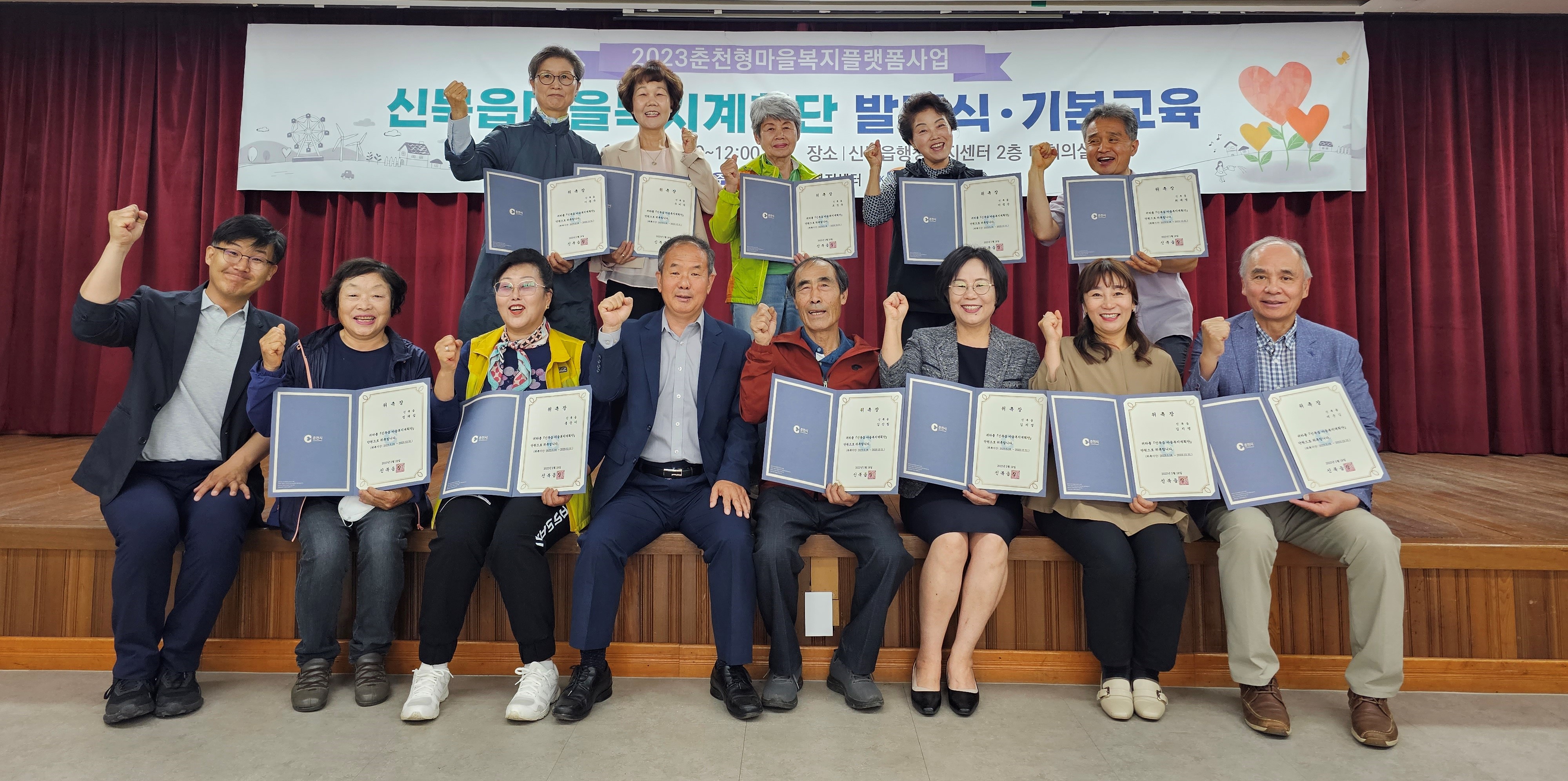 [강원사회복지신문 서은진 기자]=춘천시 신북읍 행정복지센터(읍장 현은식)는 지난 5월 18일 소양강댐노인복지관(관장 허미숙)과 함께 2023년 신북읍 마을복지계획단 위촉장 수여 및 발대식을 개최했다. 이날 신북읍 마을복지계획단은 '마음과 마음을 잇는 따듯한 마을' 만들기 위한 힘찬 첫 걸음을 시작하였다. 이날 발대식...