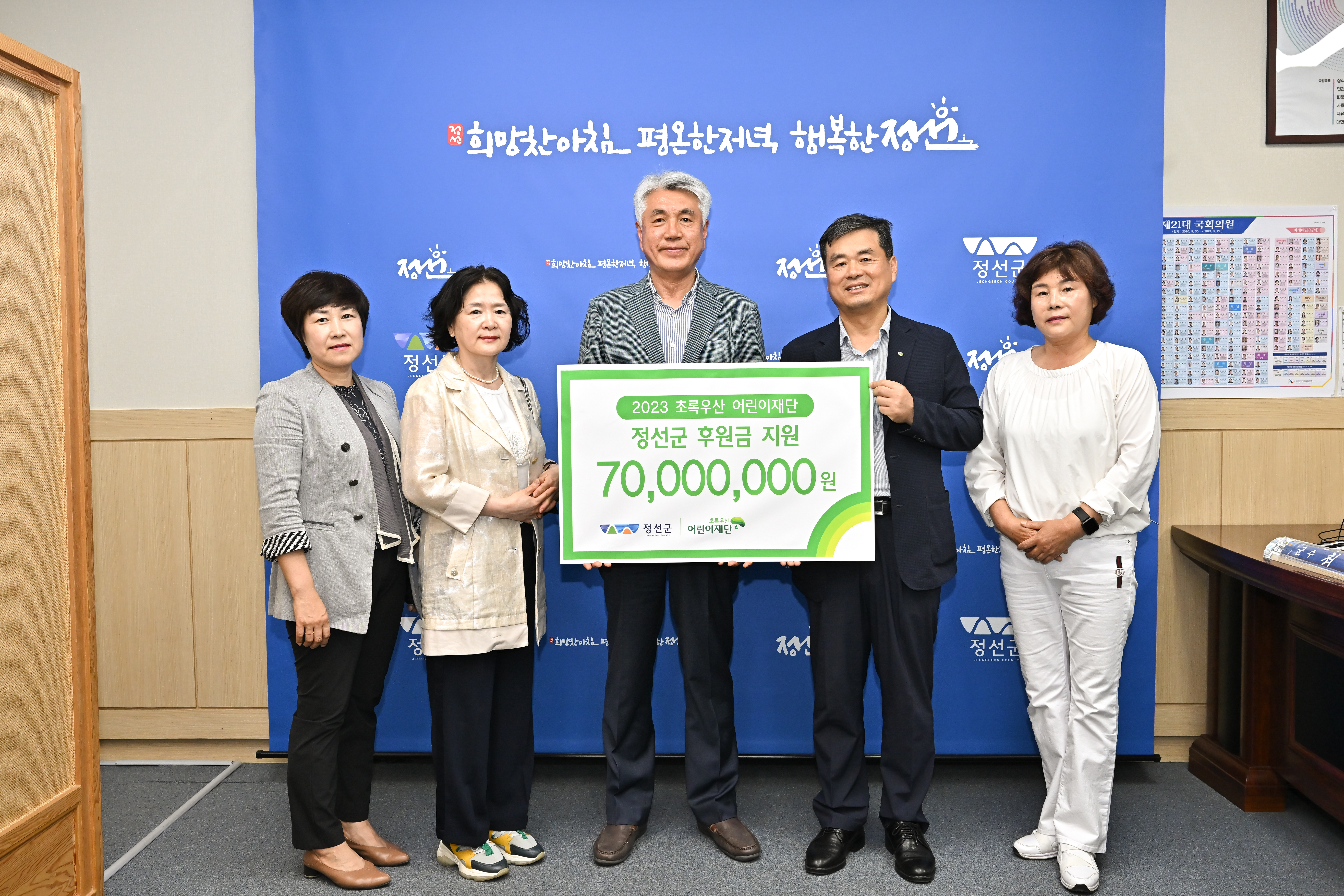 [강원사회복지신문 김도연 기자]=초록우산어린이재단 강원지역본부(본부장 최기원)는 지난 5월 16일 국민고향 정선군을 방문해 최승준 정선군수에게 위기 상황에 놓인 아동과 가족을 위해 써달라며 후원금 7,000만원을 전달했다.