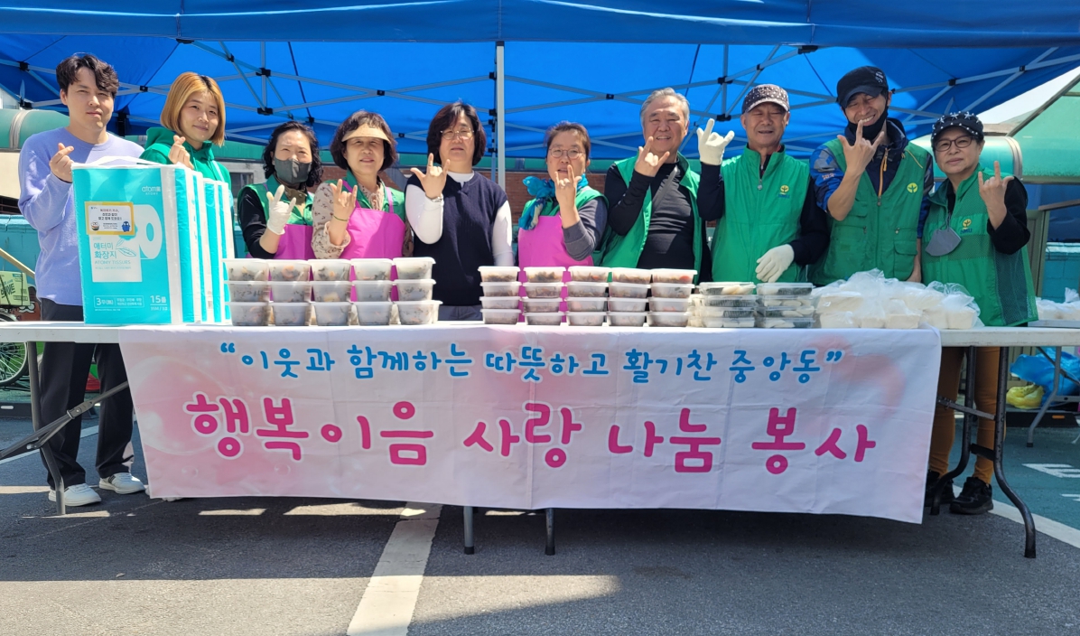 [강원사회복지신문 김도연 기자]=원주시 중앙동 새마을회(회장 김흥수, 이복순)는 지난 5월 11일 사랑 가득 먹거리 나눔 봉사를 실시했다. 이날 회원들은 정성스럽게 준비한 불고기, 겉절이, 절편과 식용유로 만든 친환경 비누를 관내 어려운 이웃 20가구에 전달했다. 김흥수 새마을회장은 "도움이 필요한 주변의 이웃에게 반...