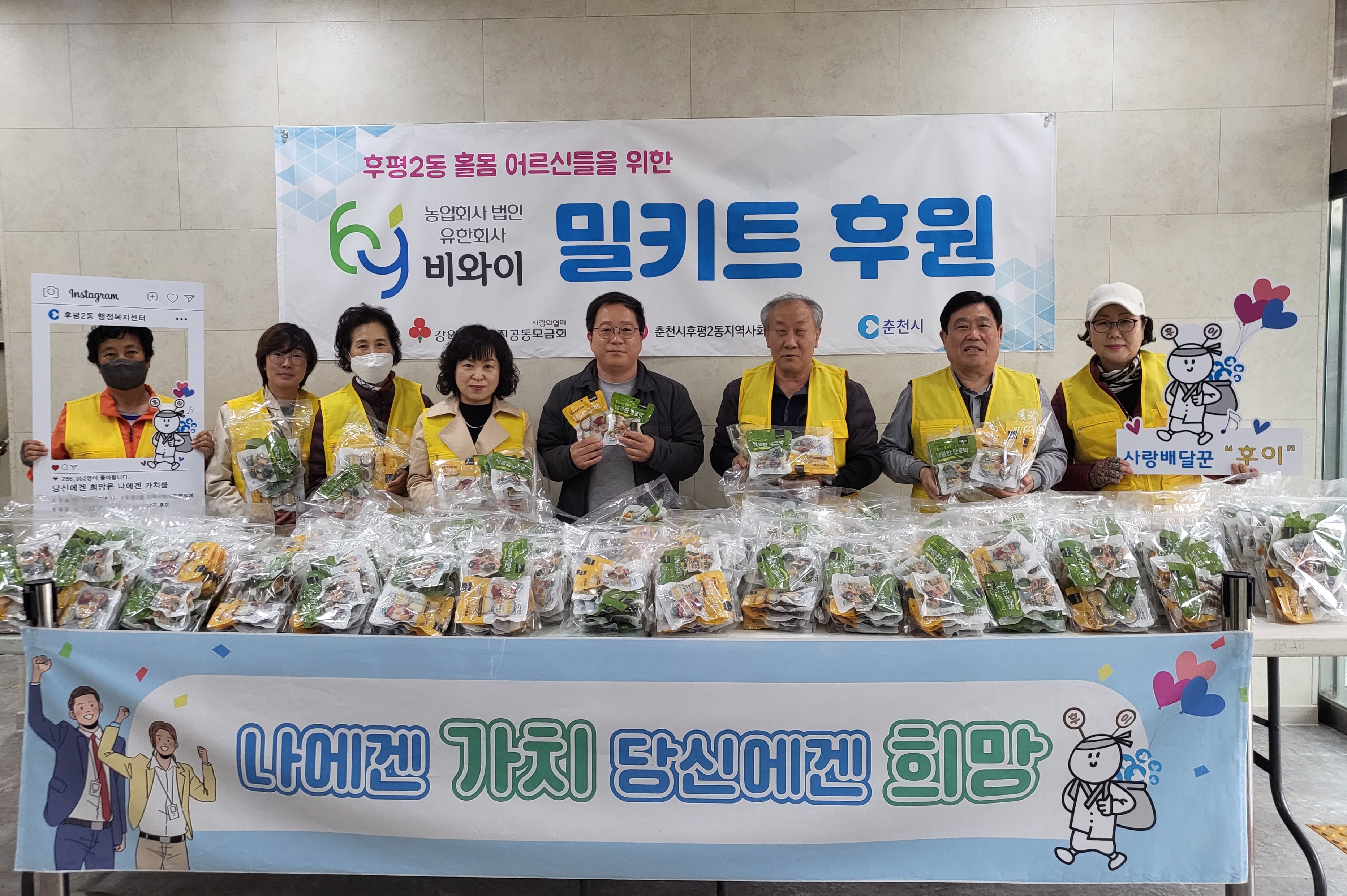 [강원사회복지신문 김도연 기자]=농업회사법인 유한회사 비와이(대표 추풍년·사장 임현태)는 지난 4월 18일 선한이웃 마을돌봄 프로젝트의 일환으로 지역아동센터 2개소와 경로당 8개소에 밀키트 100개를 후원했다.