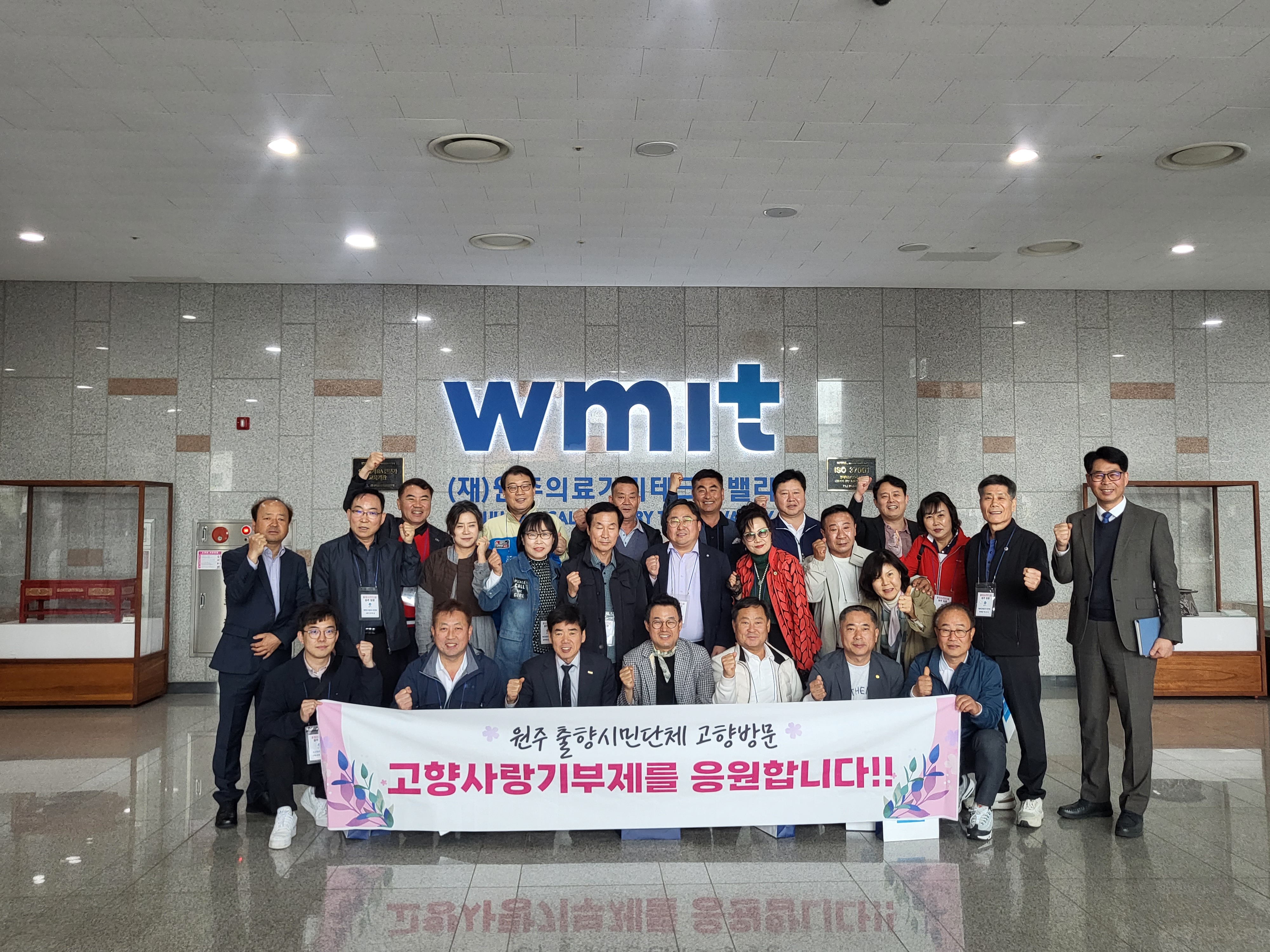 [강원사회복지신문 홍기한 기자]=재경원주시민회(회장 이규정)을 비롯한 8개 출향시민단체 임원 22명은 지난 4월 18일 원주 발전을 응원하는 마음을 담아 고향사랑기부제에 동참했다. 이날 출향시민단체 임원진은 원주 관광명소인 ‘뮤지엄 산’과 국내뿐 아니라 전 세계적으로 앞서 나가는 원주의료기기 산업의 산실인 원주...