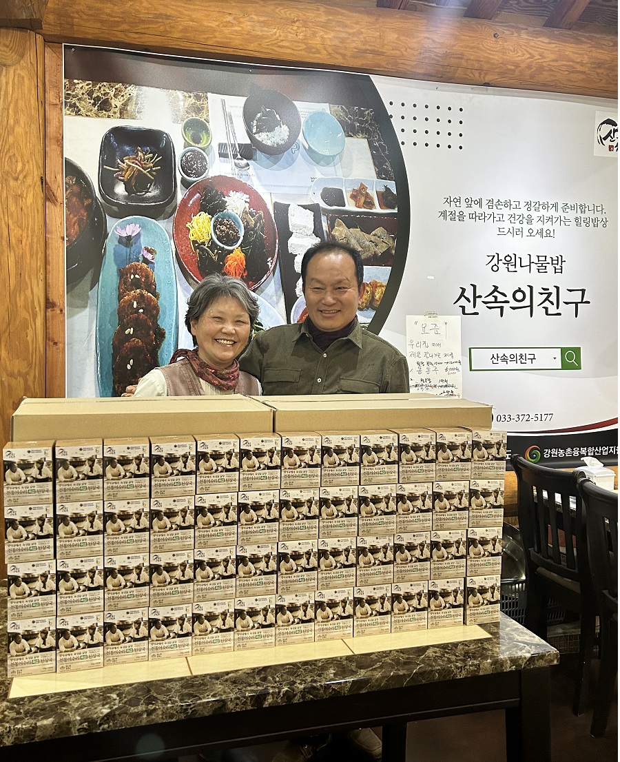 [강원사회복지신문 김종한 기자]=영월군 북면 산속의 친구 김성달 대표는 지난 4월 17일(월) 최근 산불로 큰 피해를 입은 강릉 지역 이재민들을 위해 어려운 시기 조금이나마 도움이 되길 바란다며 '전통 어수리 블록 된장국' 2박스(1,000개, 300만원 상당)를 강릉시청에 전달하였다.